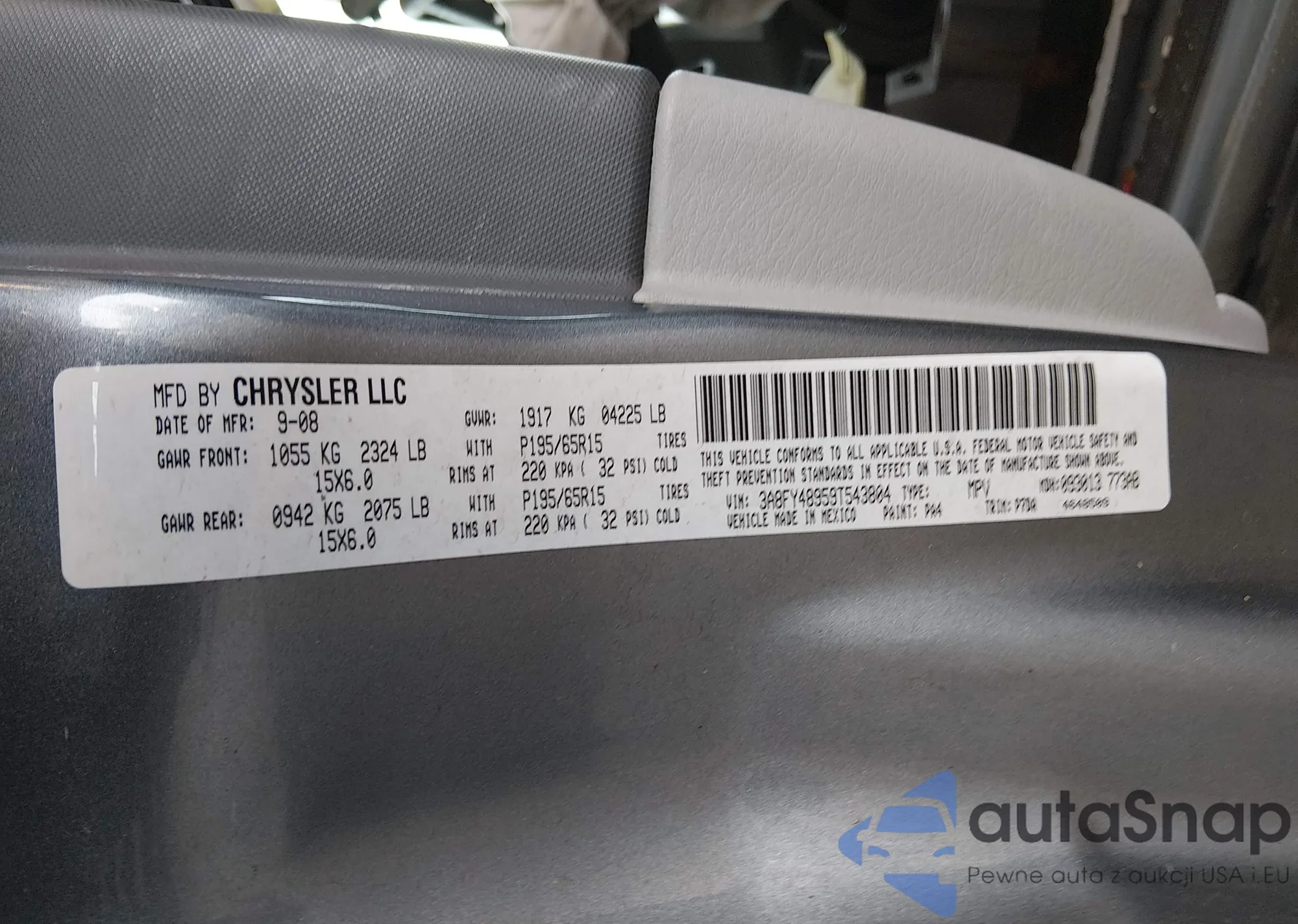 • VIN: 3A8FY48959T543804