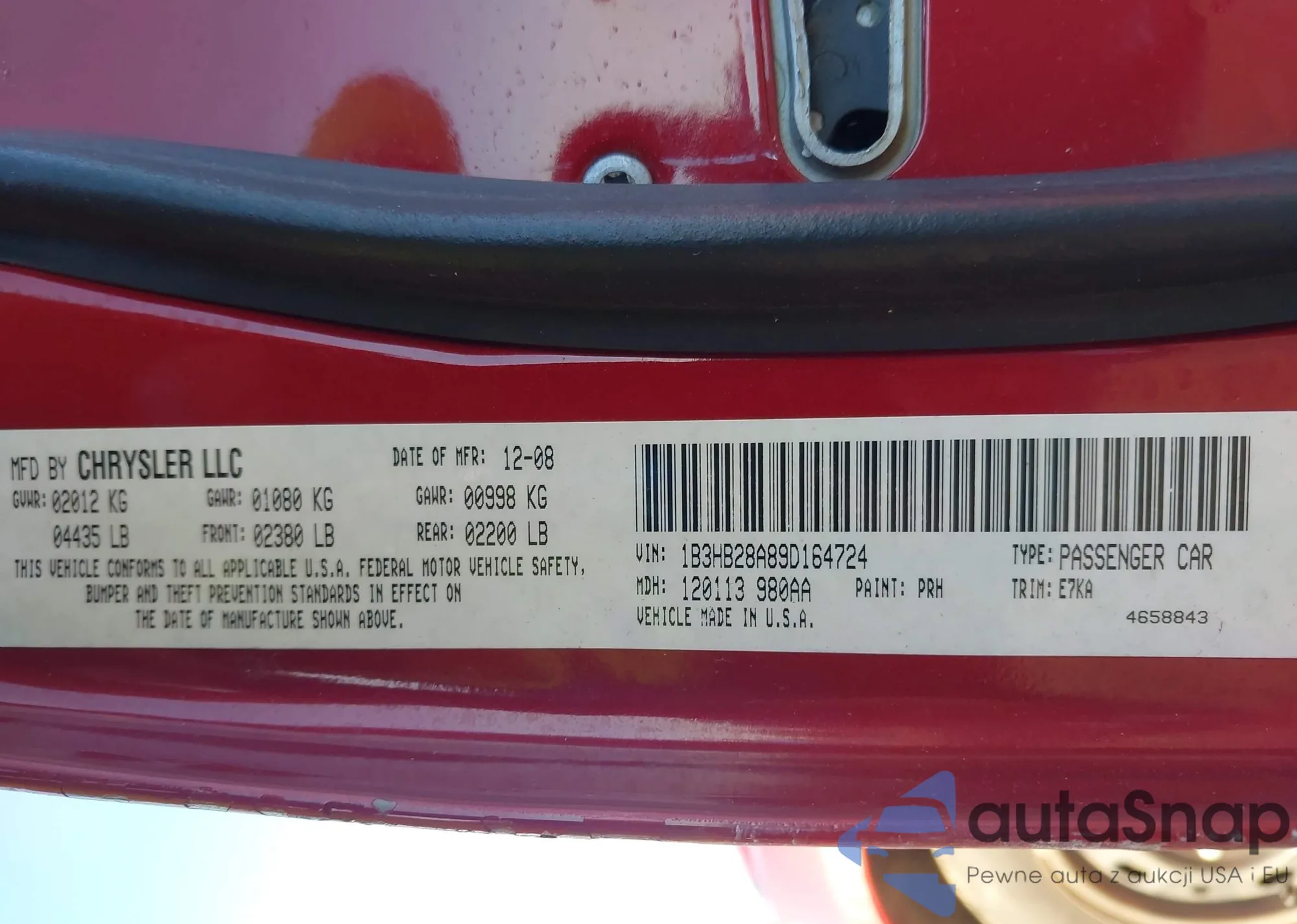 VIN: 1B3HB28A89D164724