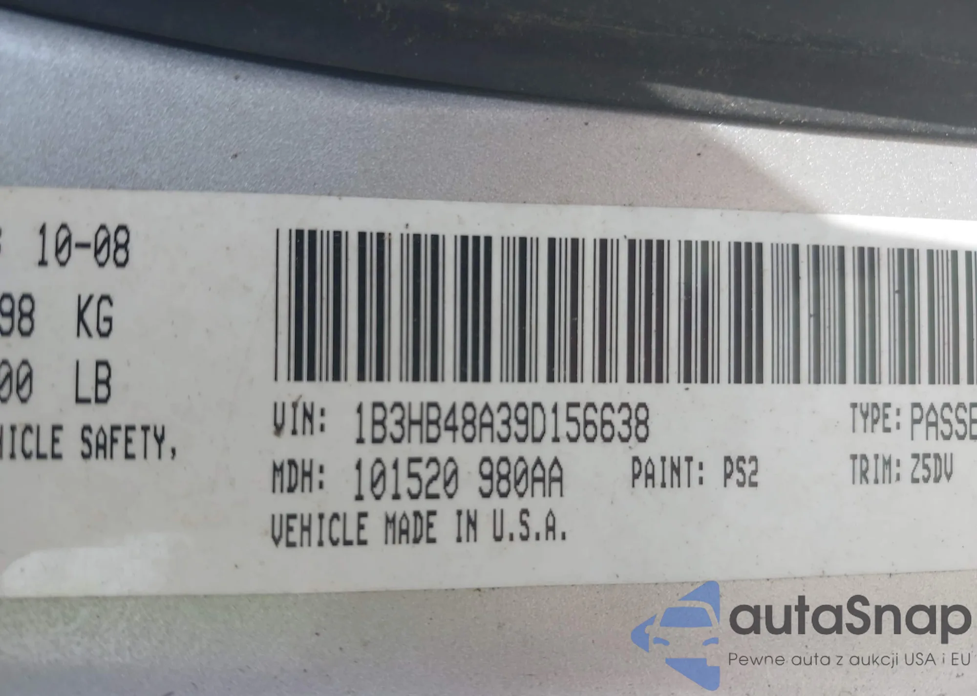 VIN: 1B3HB48A39D156638