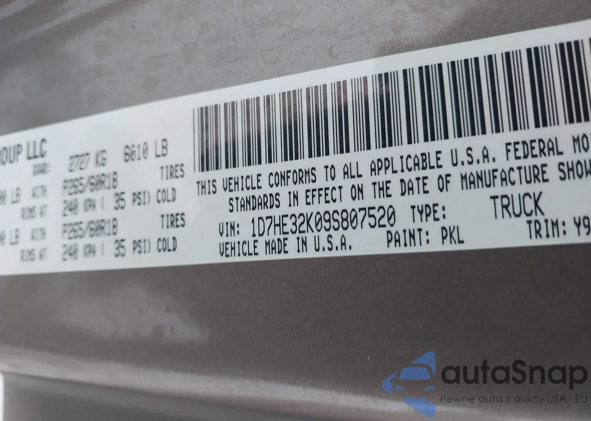 VIN: 1D7HE32K09S807520