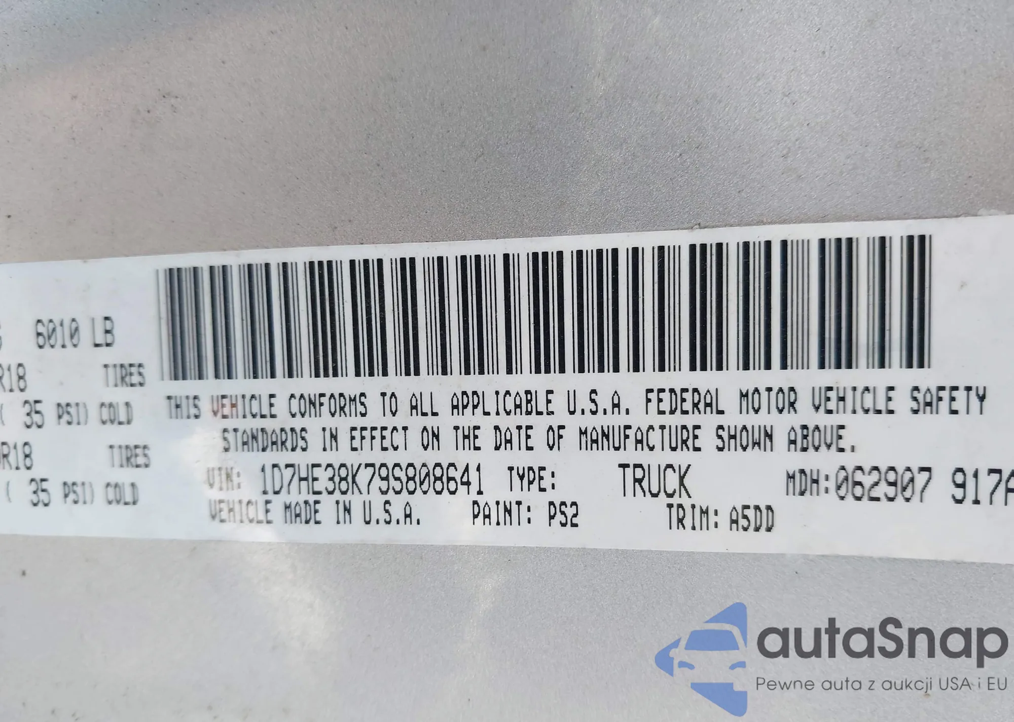 The car Dodge Dakota 2009 (VIN 1D7HE38K79S808641) has not been auctioned before. The documents are clean, and the mileage matches or is below the market average. Sold by an insurance company – we recommend purchase. Delivery to the port will take approx. 6–8 weeks.