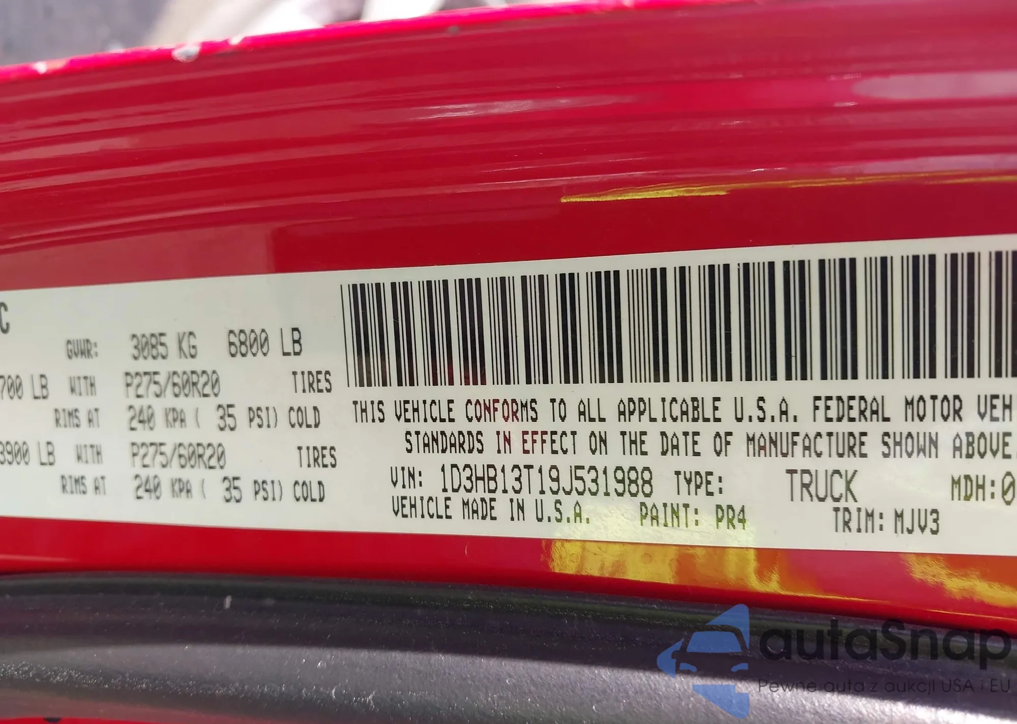The car Dodge RAM 2009 (VIN 1D3HB13T19J531988) has not been auctioned before. The documents are clean, and the mileage matches or is below the market average. Sold by an insurance company – we recommend purchase. Delivery to the port will take approx. 6–8 weeks.