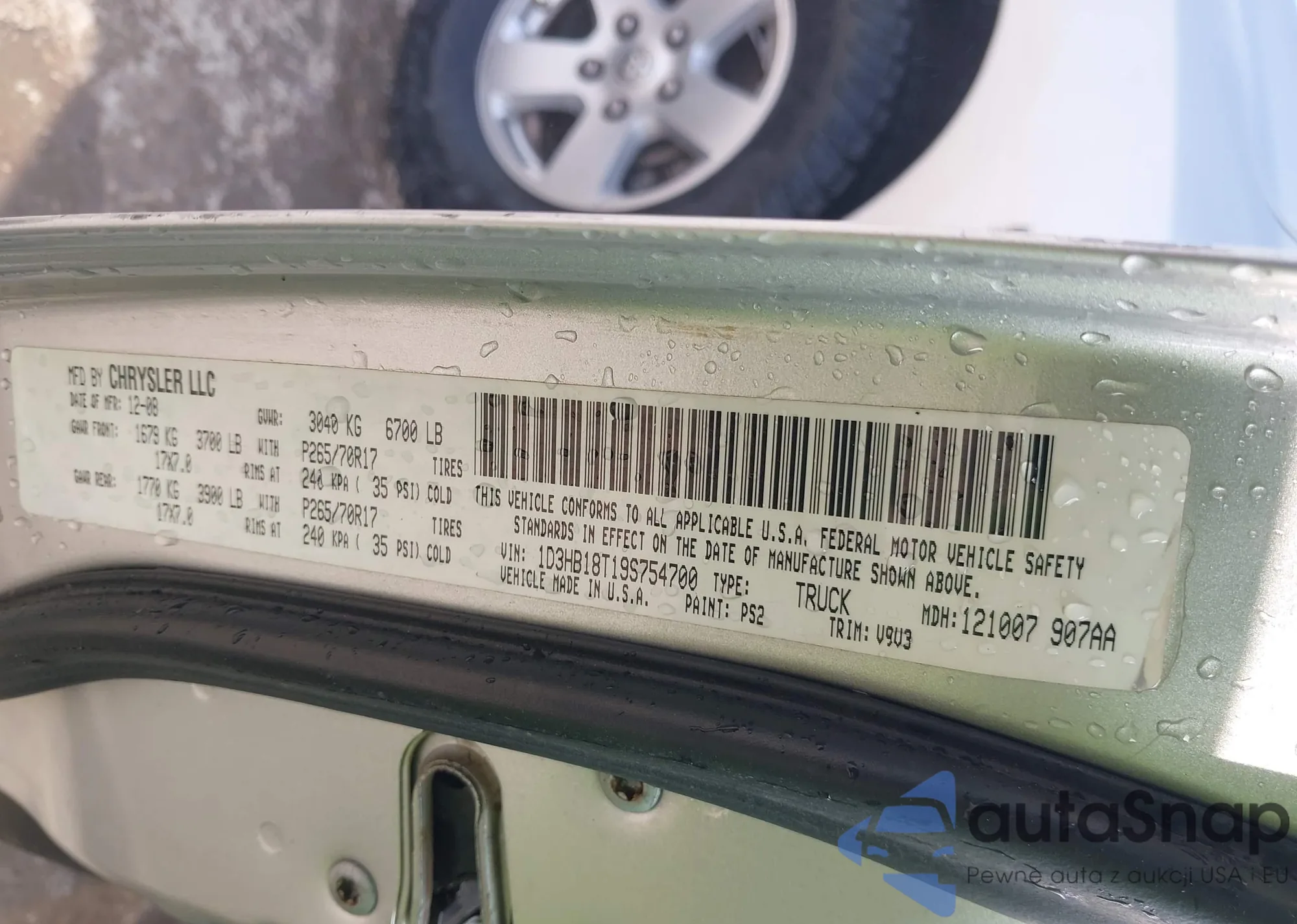 The car Dodge RAM 2009 (VIN 1D3HB18T19S754700) has not been auctioned before. The documents are clean, and the mileage matches or is below the market average. Sold by an insurance company – we recommend purchase. Delivery to the port will take approx. 6–8 weeks.