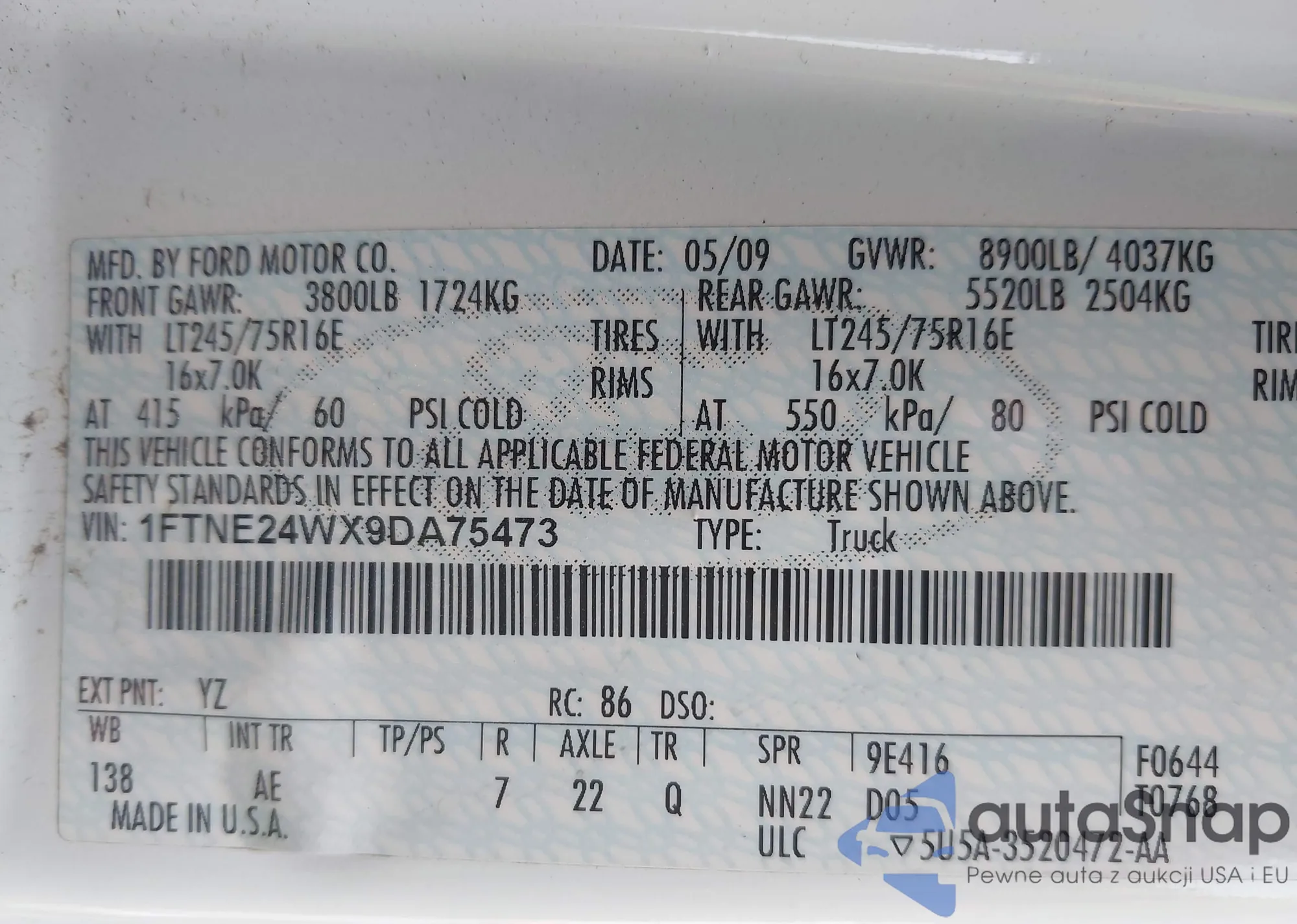 VIN: 1FTNE24WX9DA75473