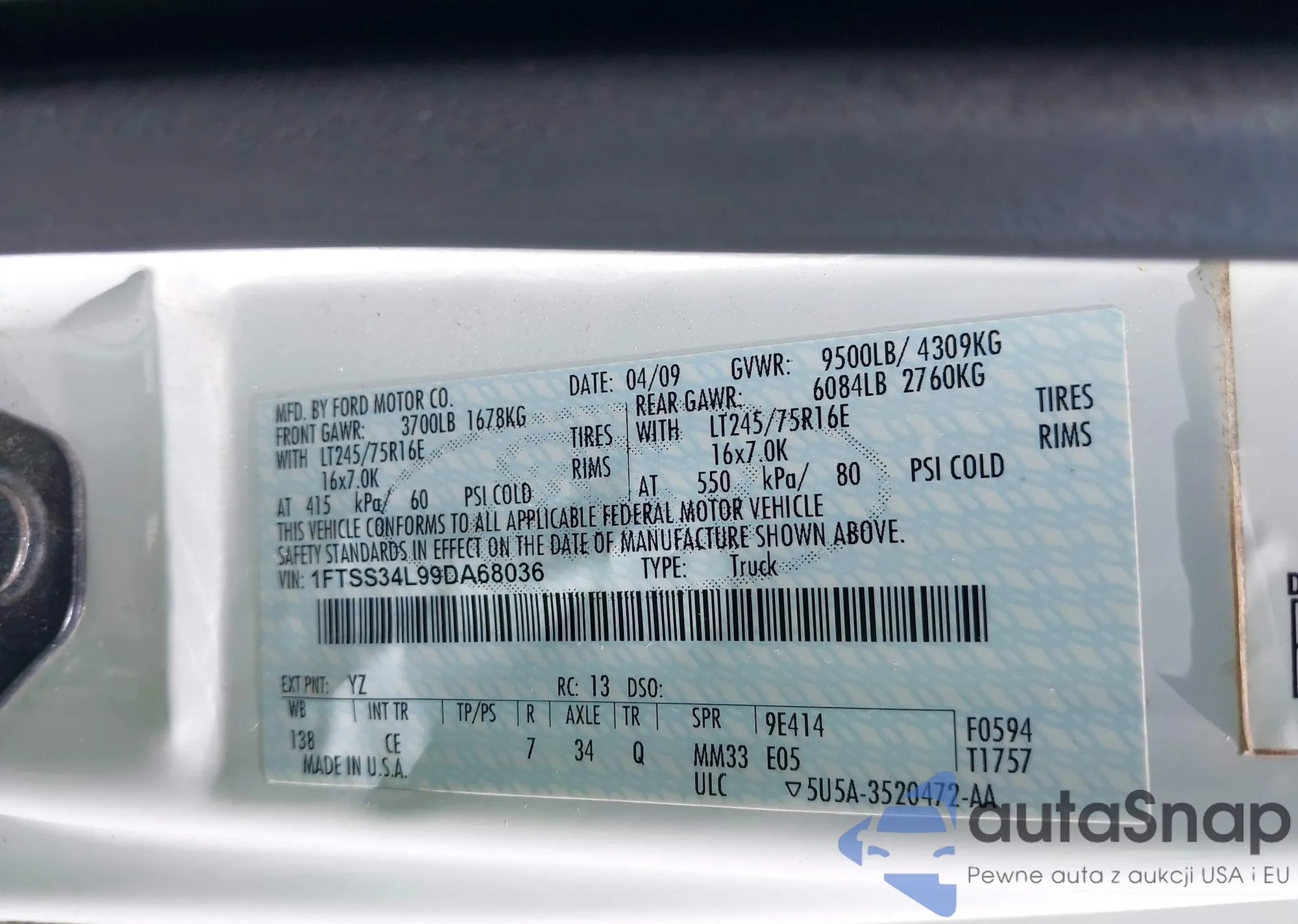VIN: 1FTSS34L99DA68036