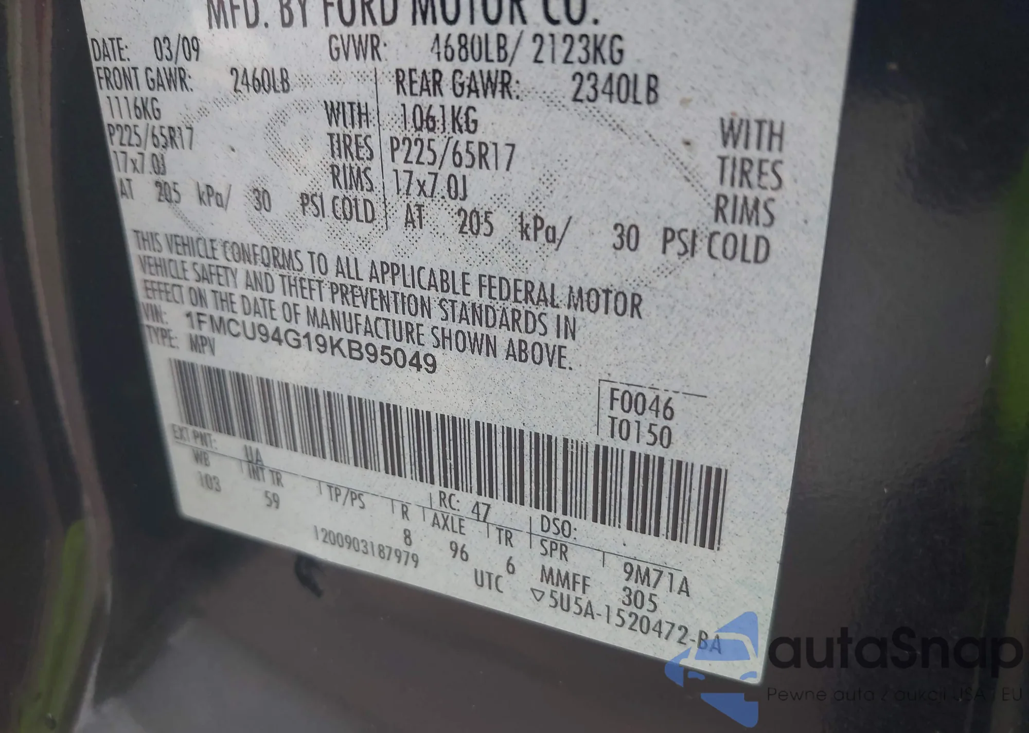 VIN: 1FMCU94G19KB95049