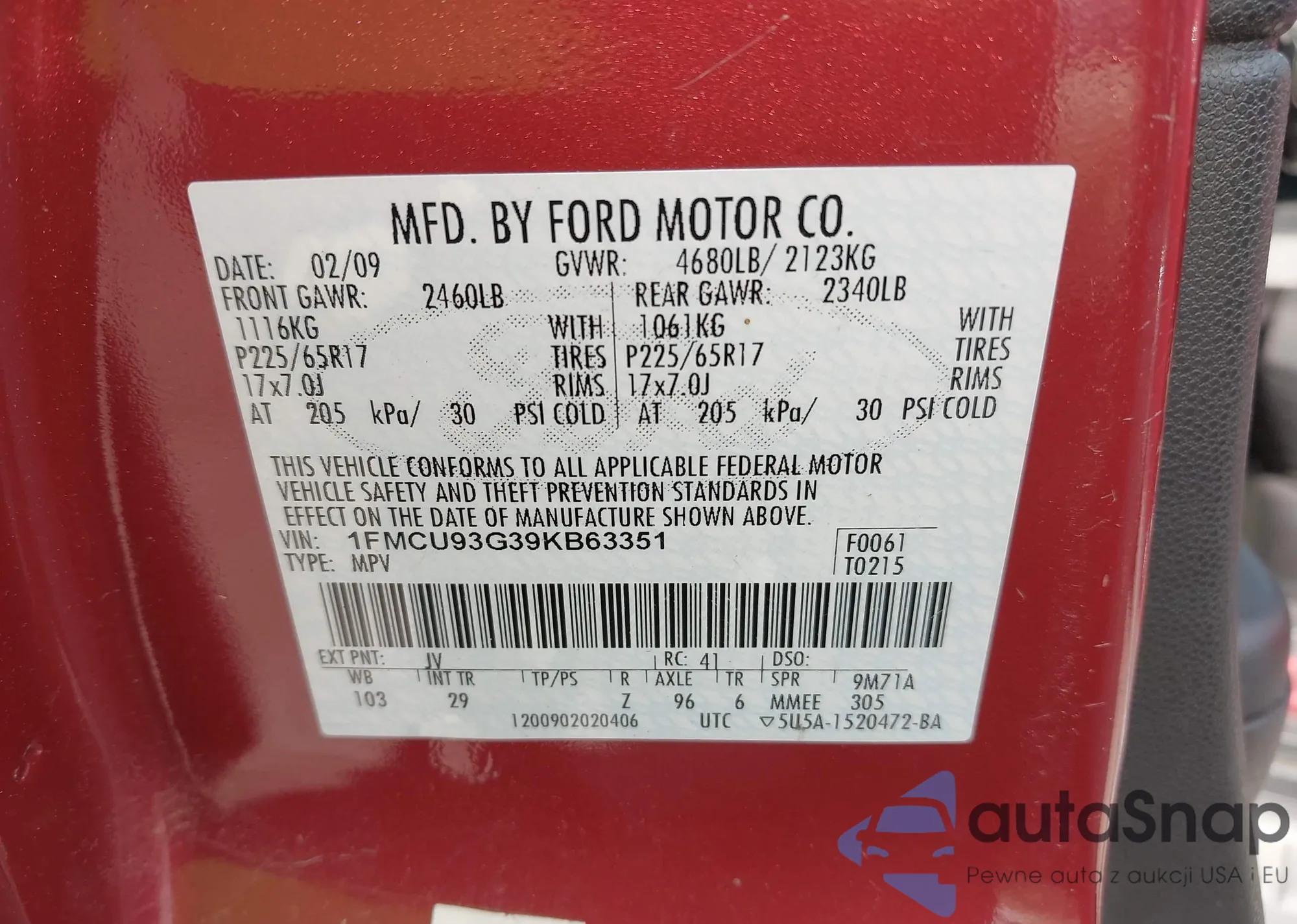 • VIN: 1FMCU93G39KB63351