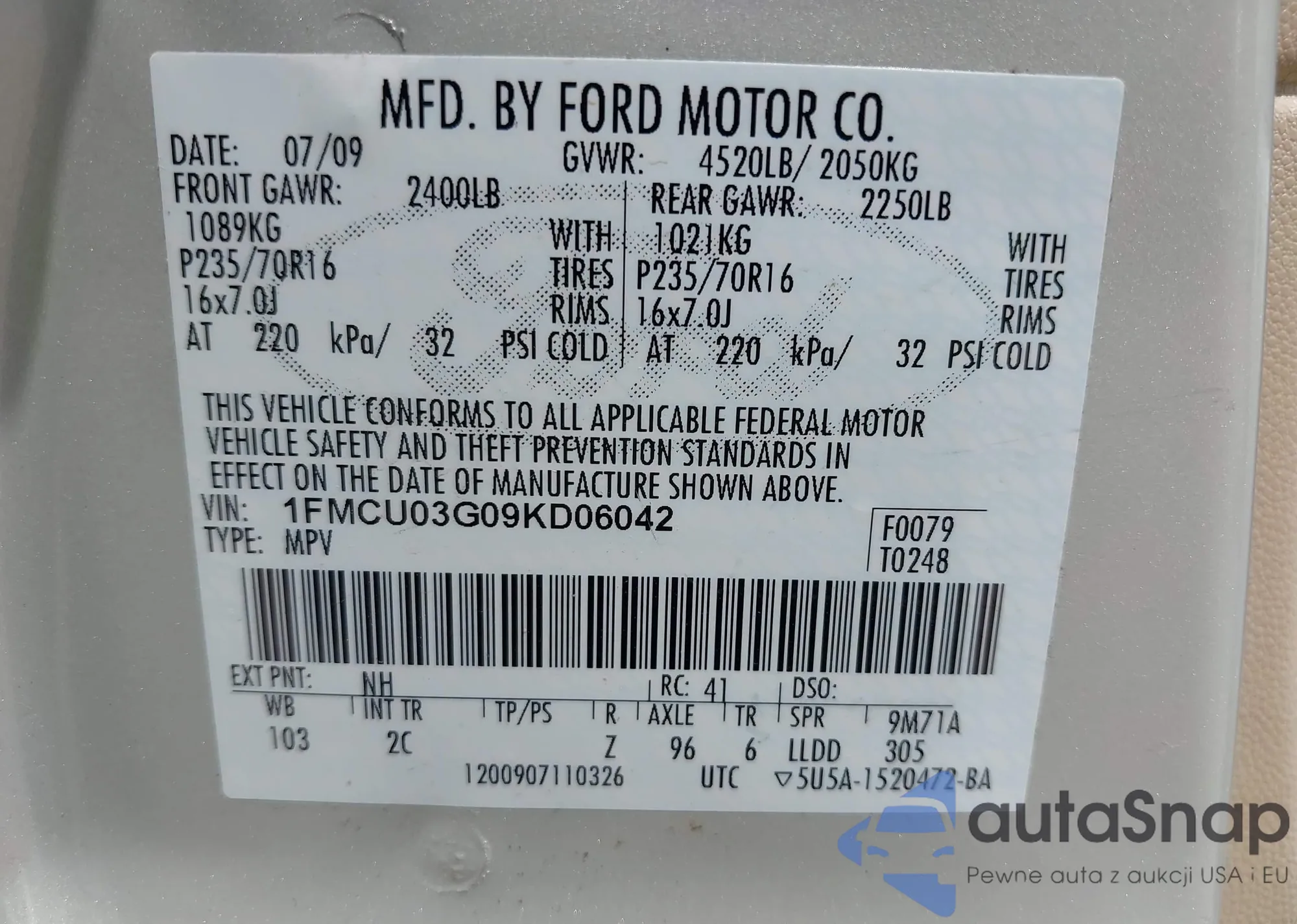 VIN: 1FMCU03G09KD06042