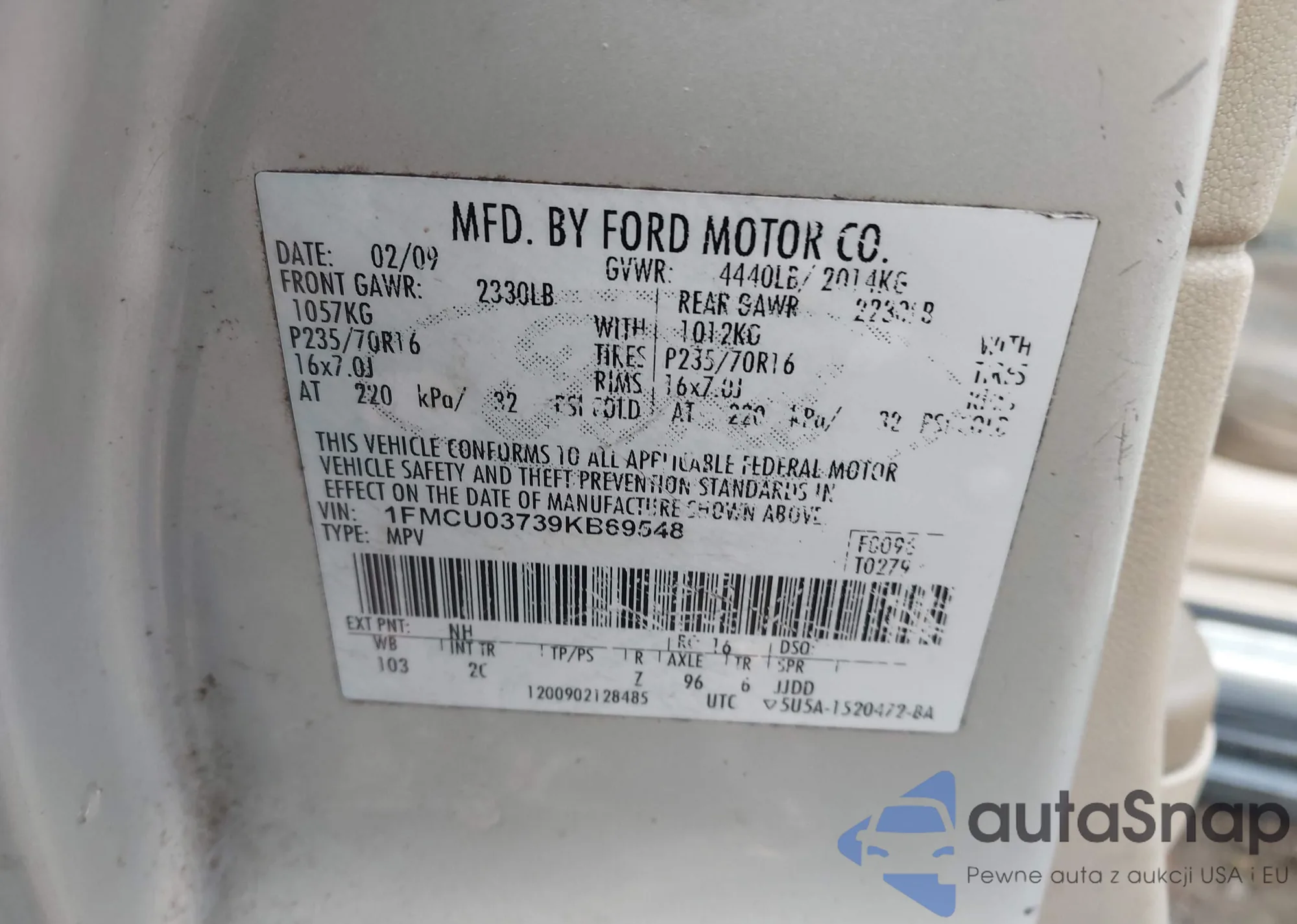 VIN: 1FMCU03739KB69548