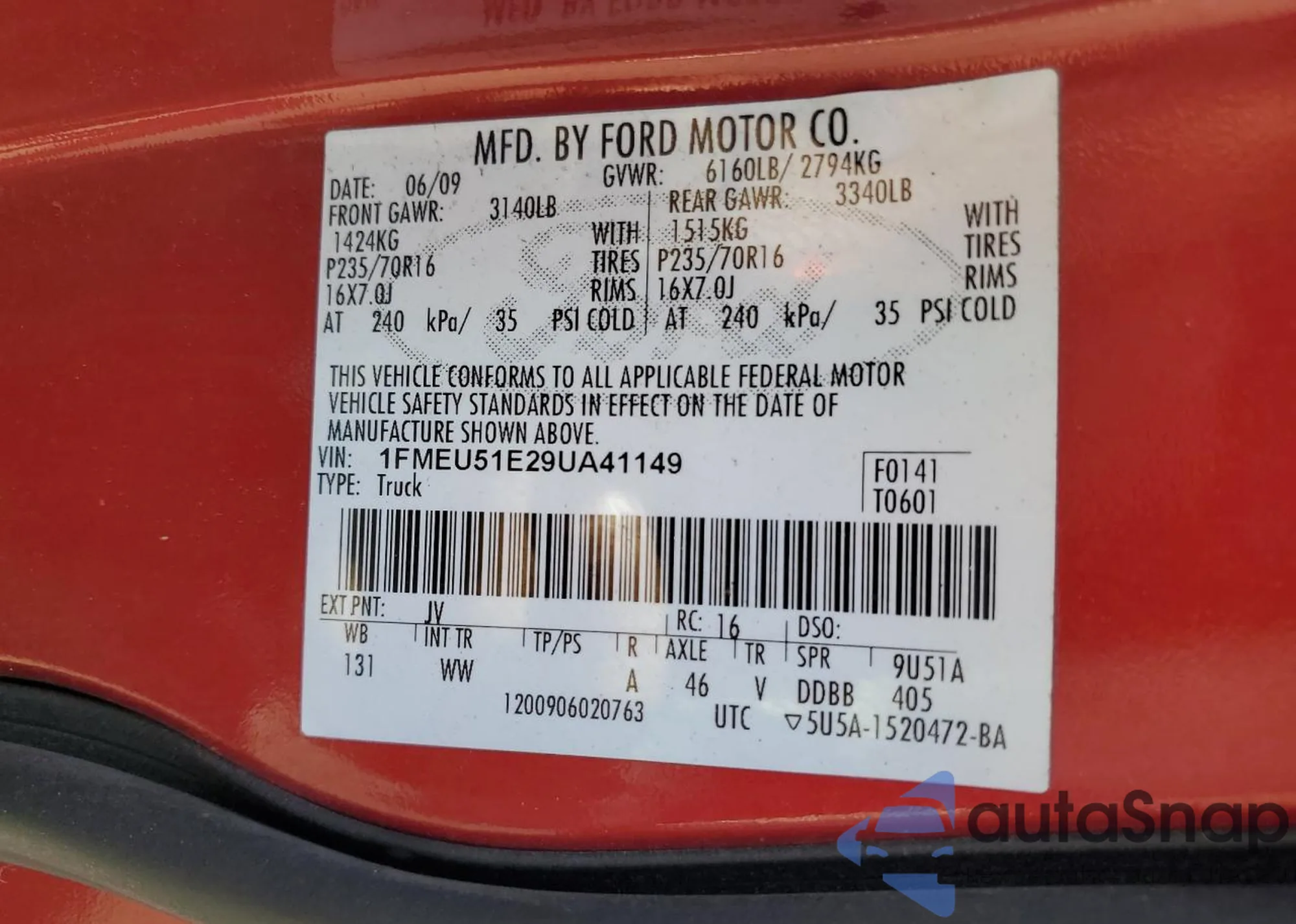 VIN: 1FMEU51E29UA41149