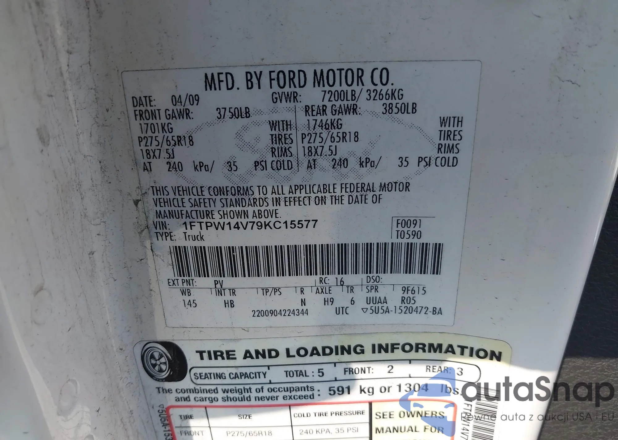 VIN: 1FTPW14V79KC15577