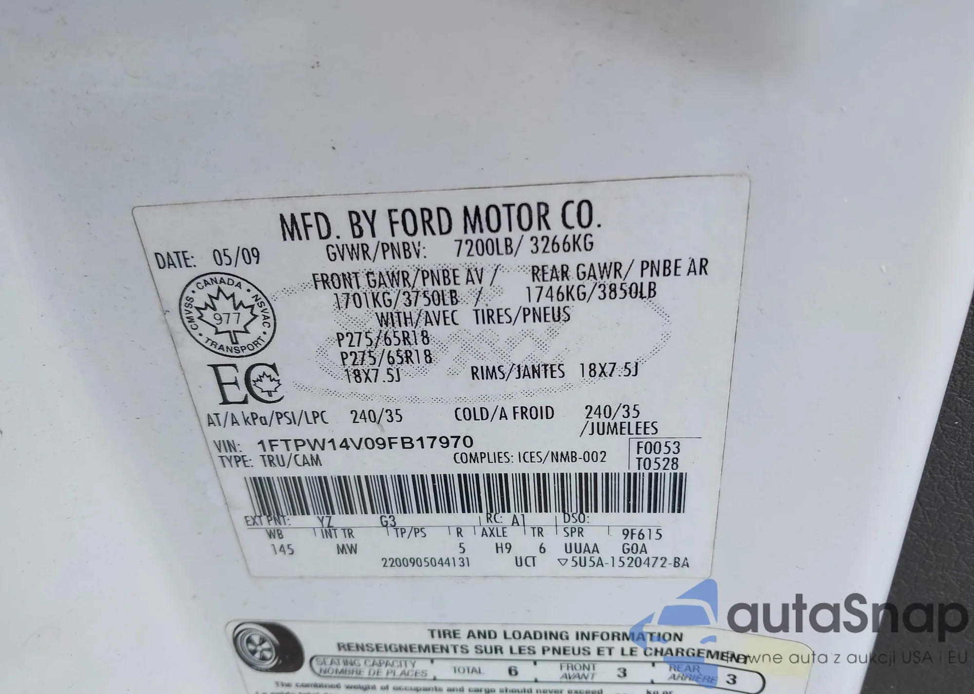 VIN: 1FTPW14V09FB17970