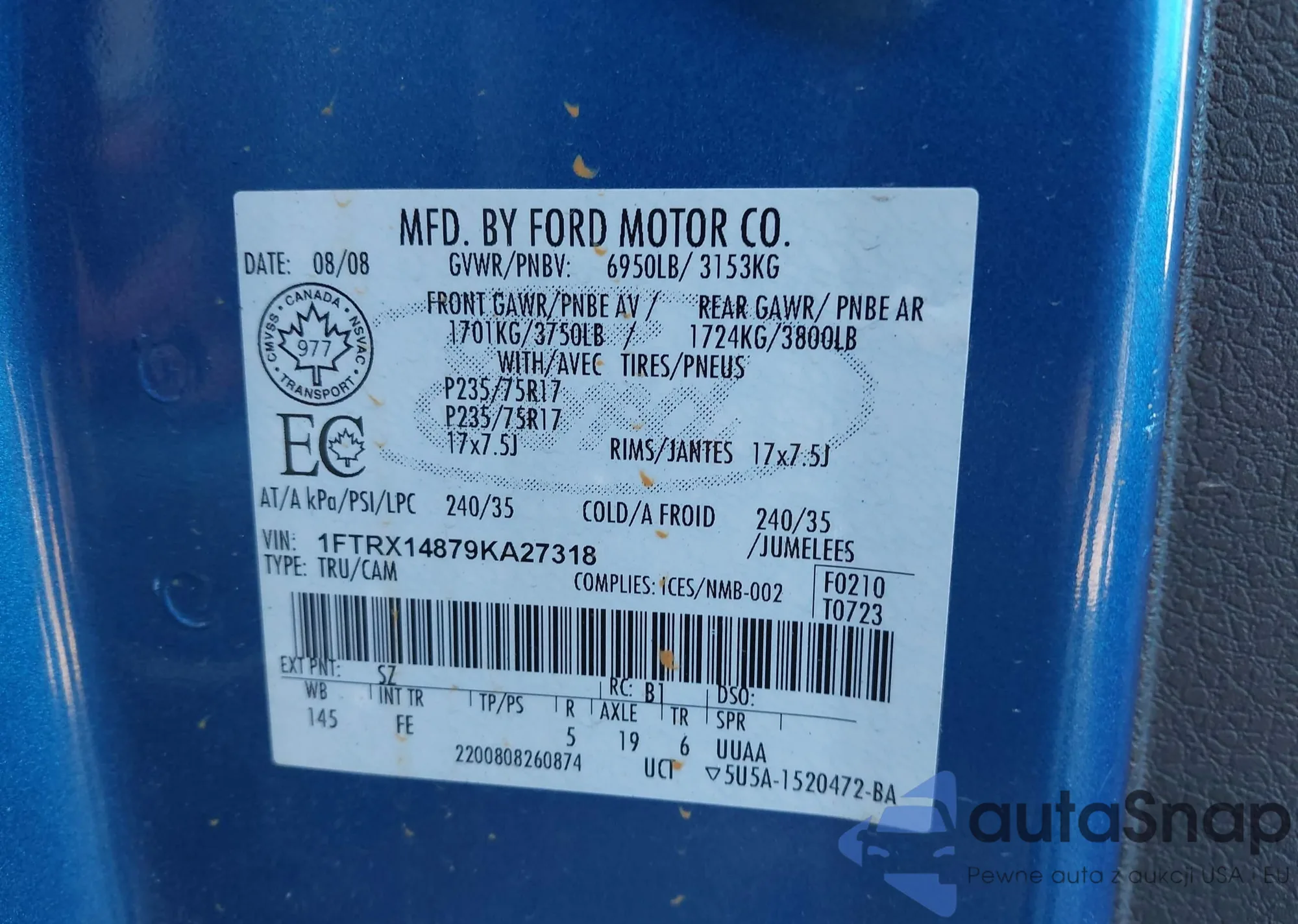 VIN: 1FTRX14879KA27318
