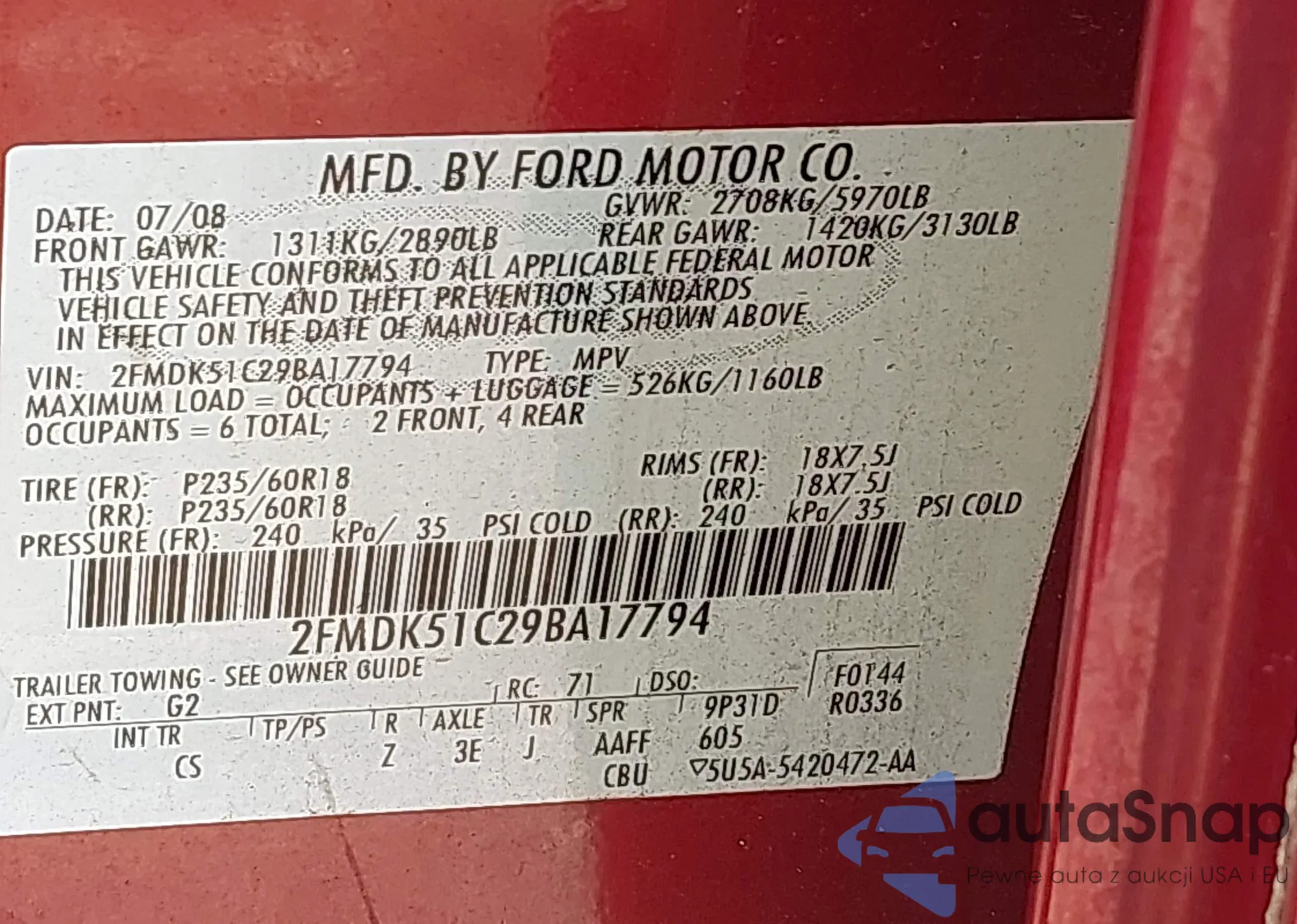 • VIN: 2FMDK51C29BA17794