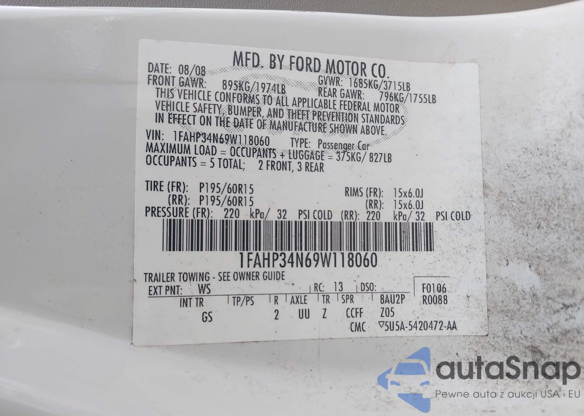 VIN: 1FAHP34N69W118060