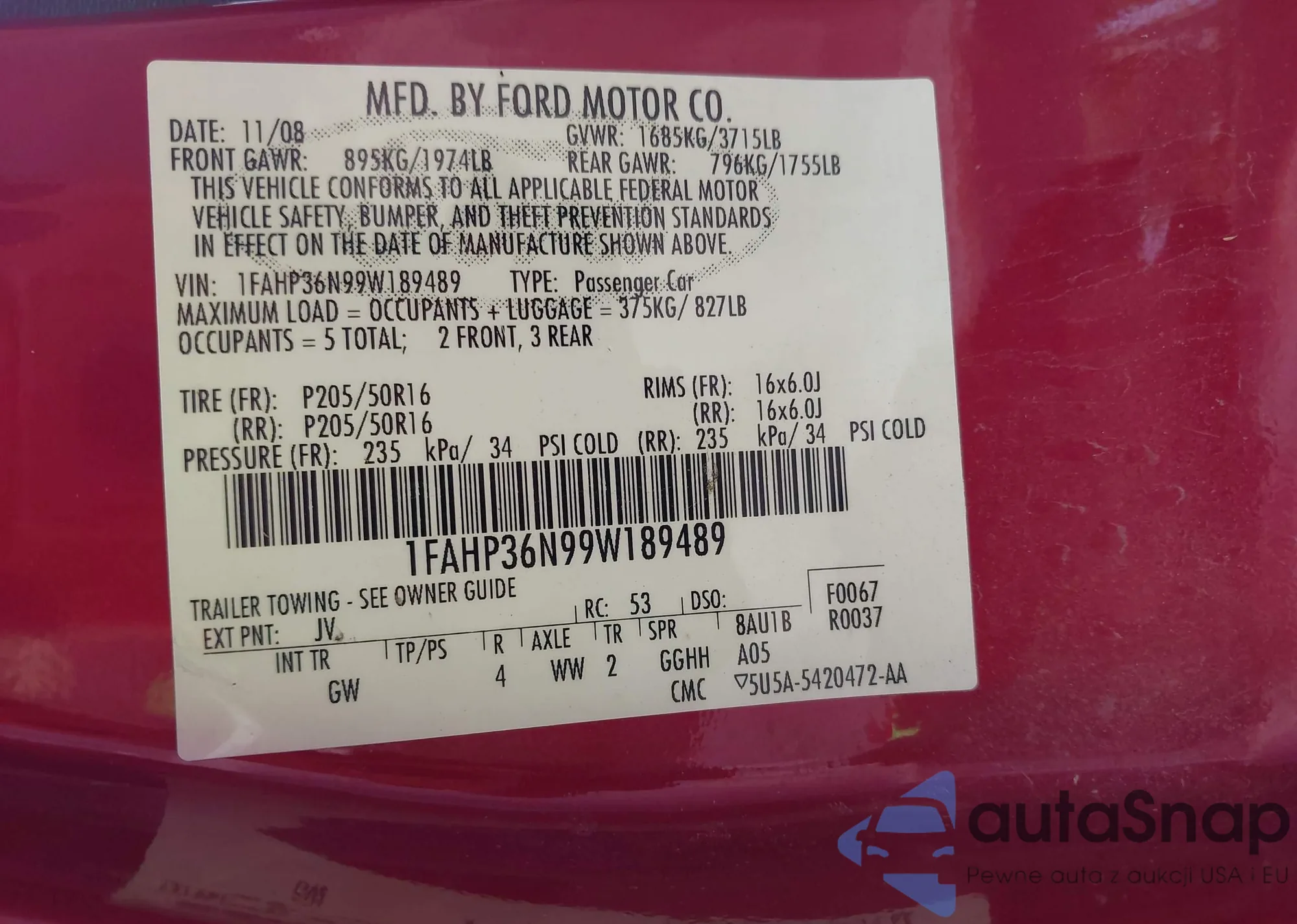 VIN: 1FAHP36N99W189489