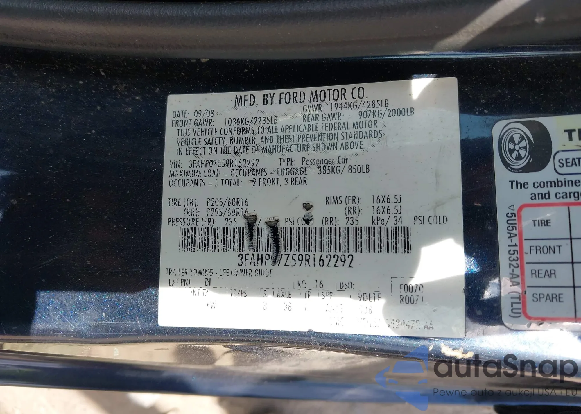 VIN: 3FAHP07Z59R162292