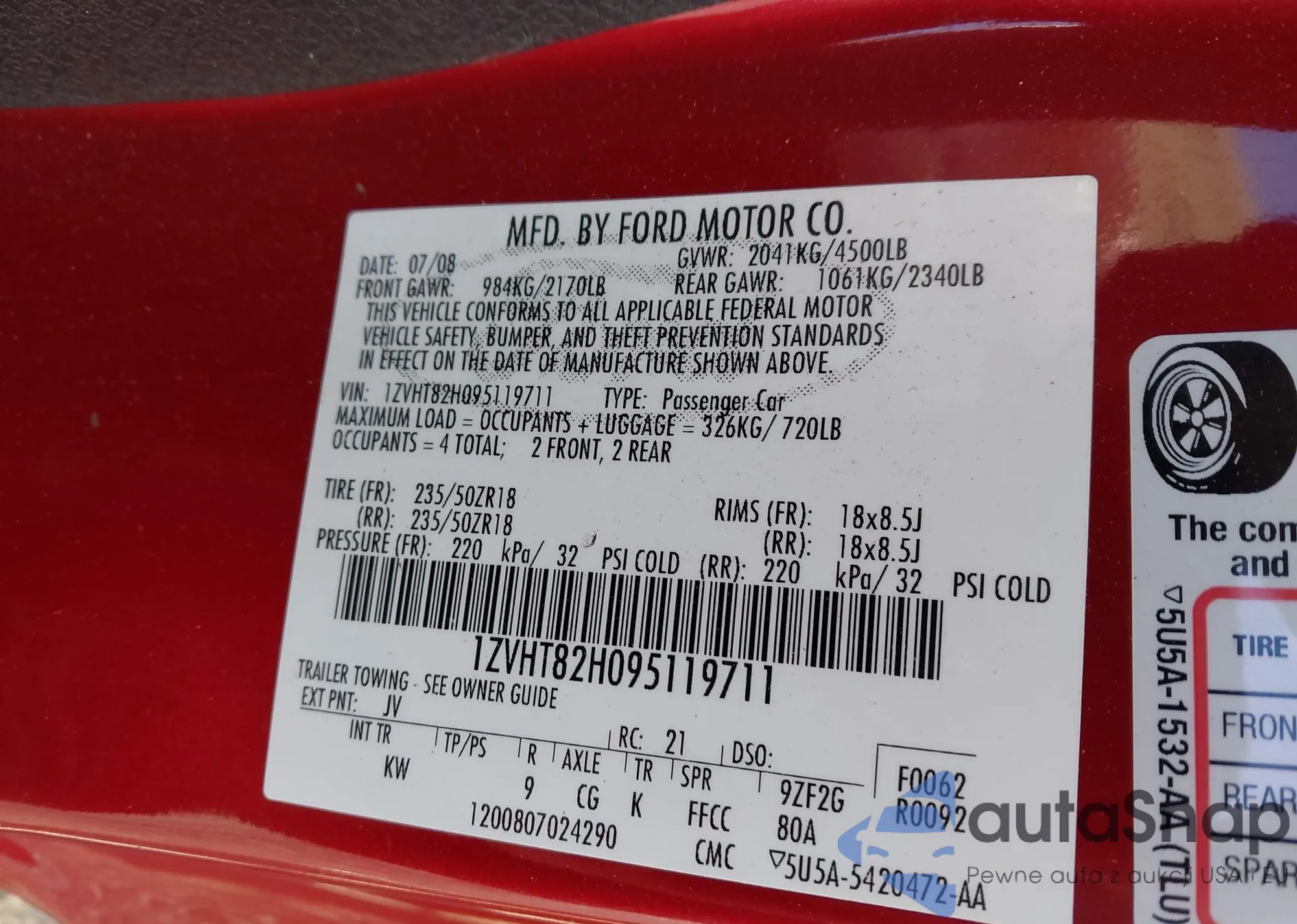 • VIN: 1ZVHT82H095119711