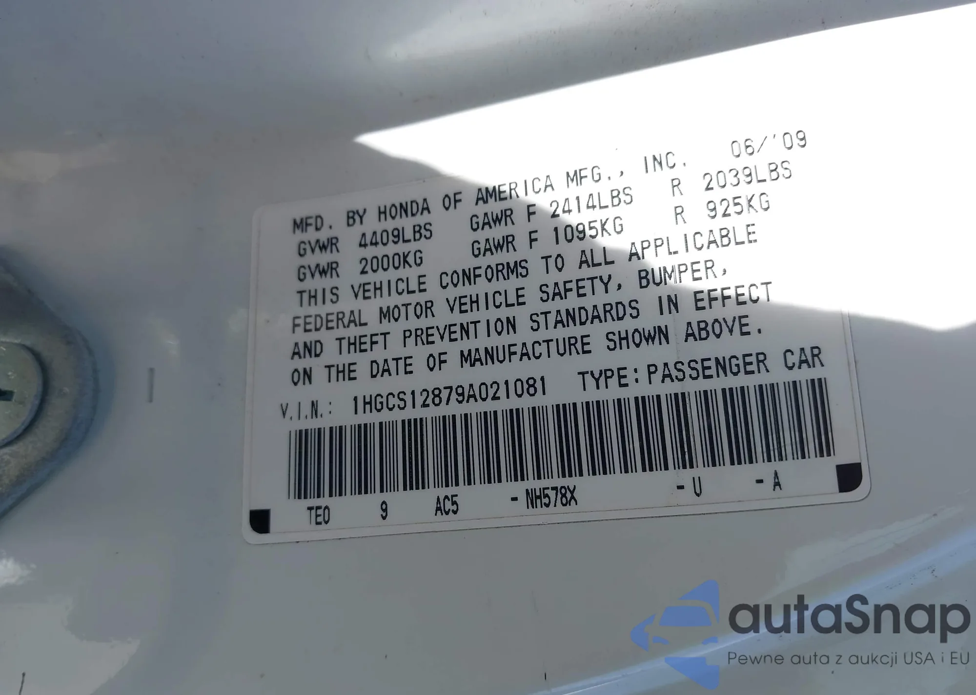 The car Honda Accord 2009 (VIN 1HGCS12879A021081) is sold by an unverified seller. We recommend checking the Carfax report and confirming registration possibilities before purchase.