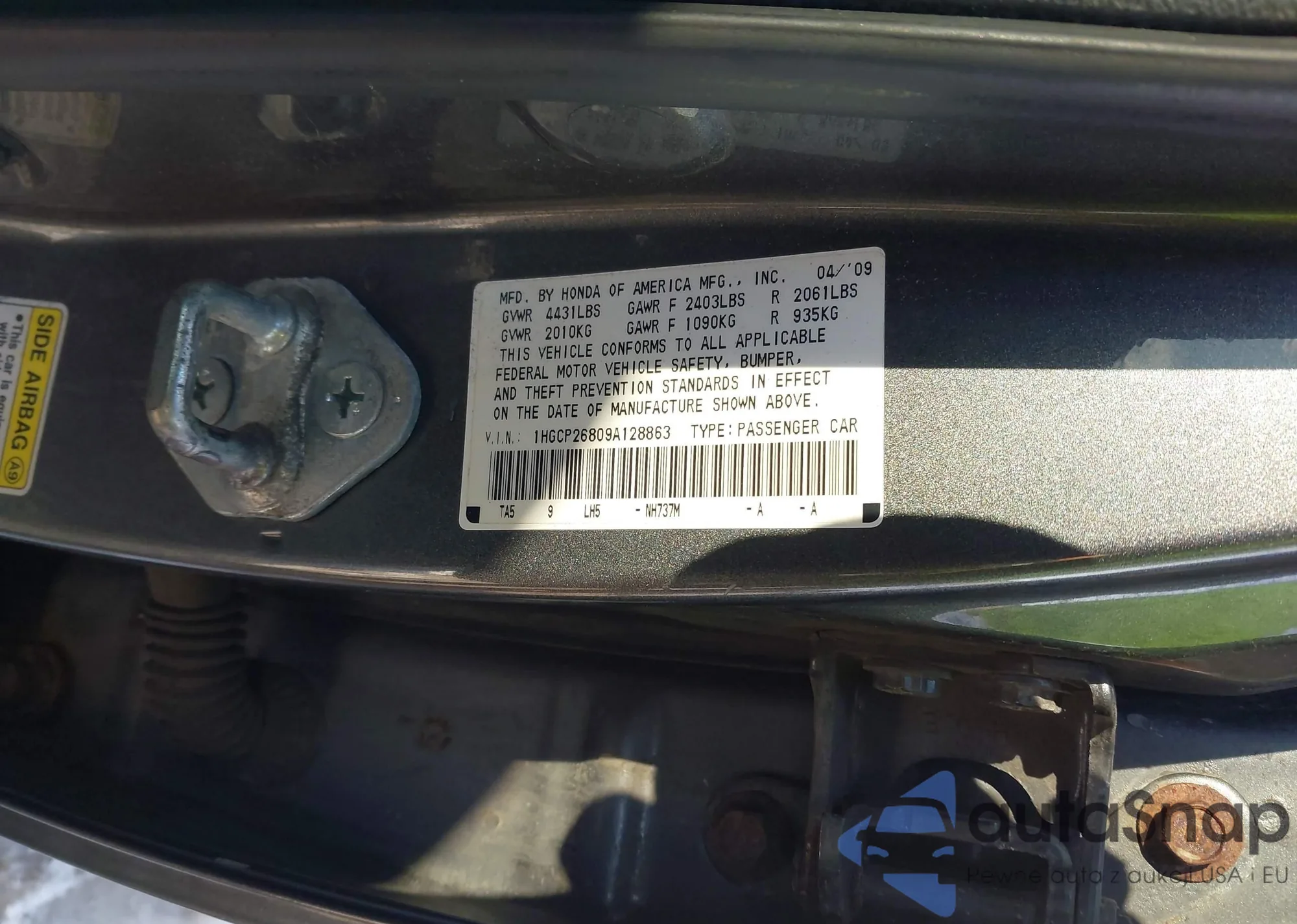 VIN: 1HGCP26809A128863