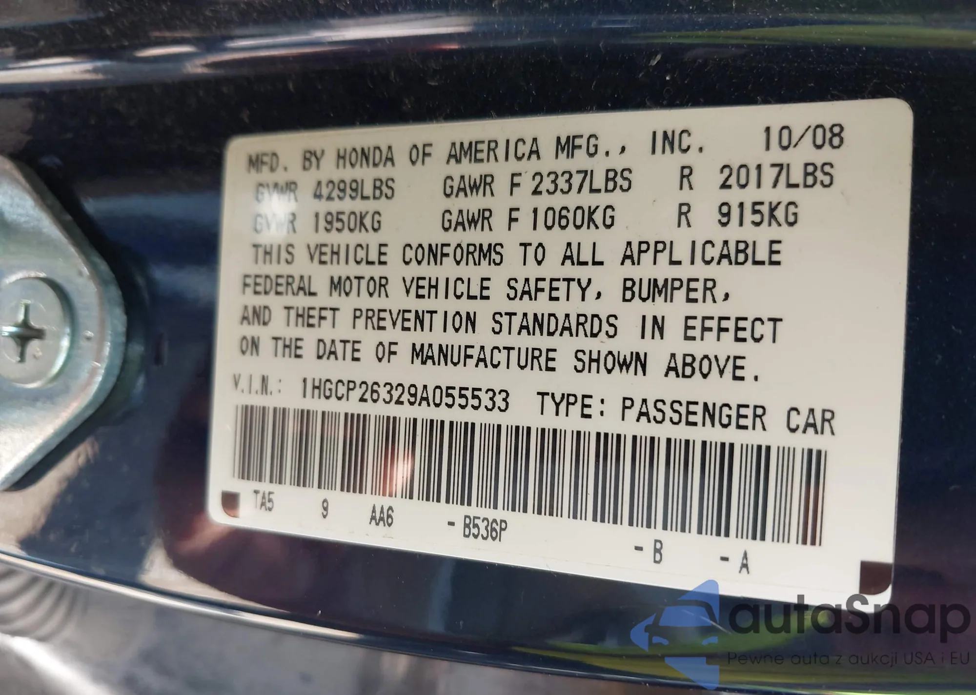 VIN: 1HGCP26329A055533