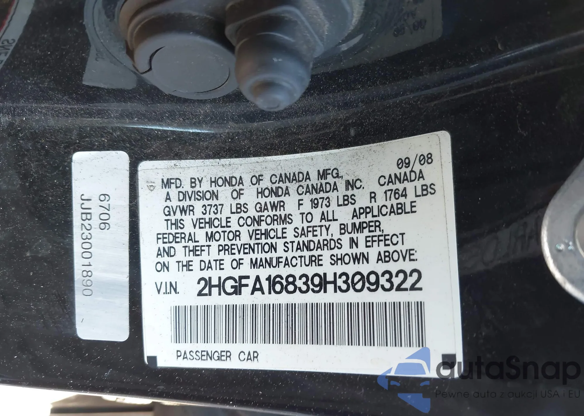 VIN: 2HGFA16839H309322