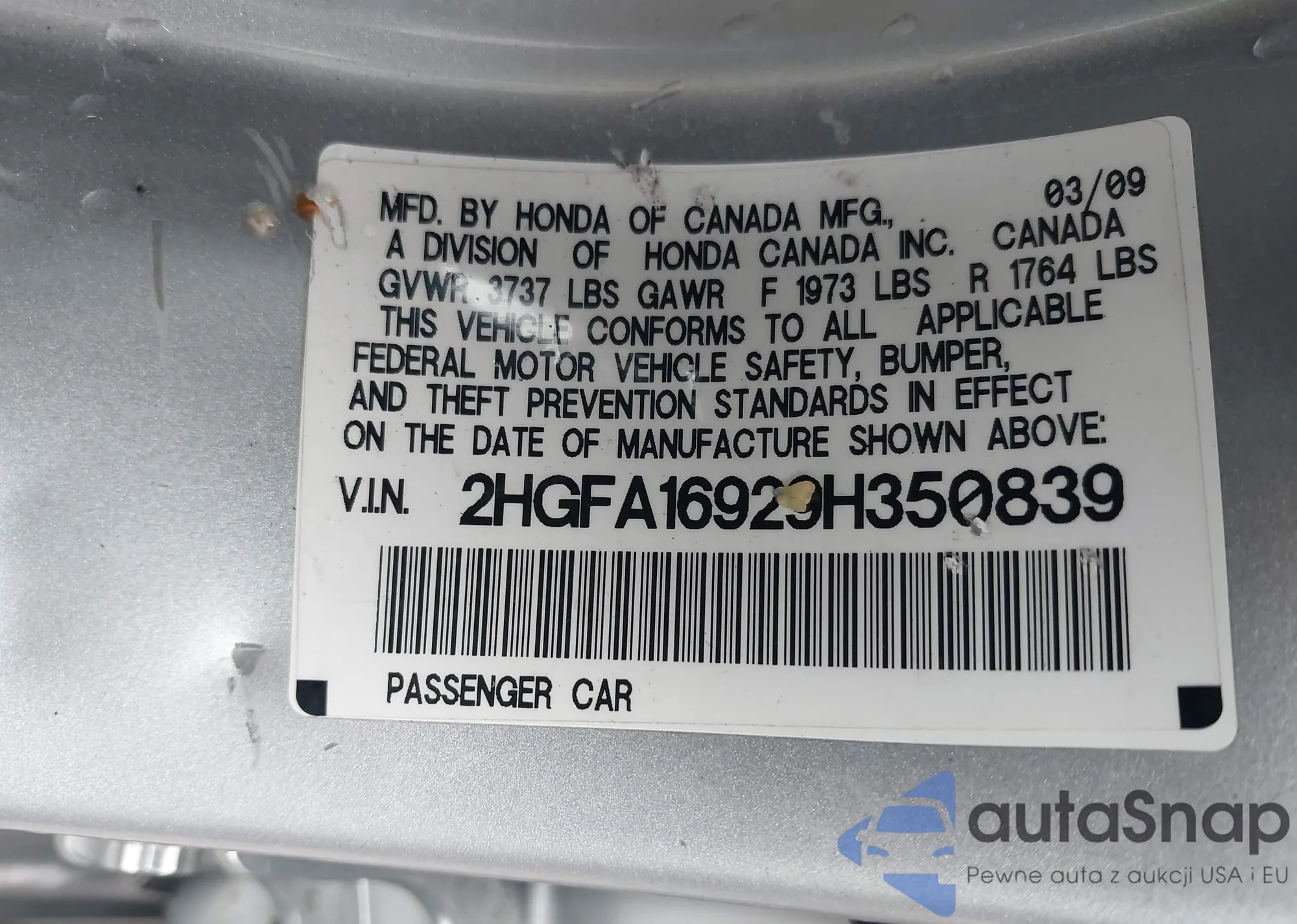 • VIN: 2HGFA16929H350839