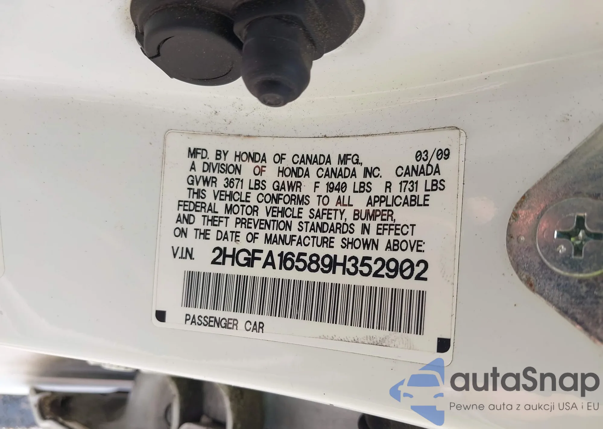 VIN: 2HGFA16589H352902