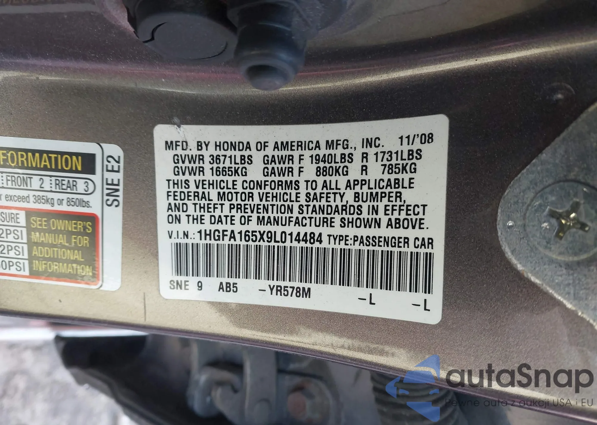 The car Honda Civic 2009 (VIN 1HGFA165X9L014484) has not been auctioned before. The documents are clean, and the mileage matches or is below the market average. Sold by an insurance company – we recommend purchase. Delivery to the port will take approx. 6–8 weeks.