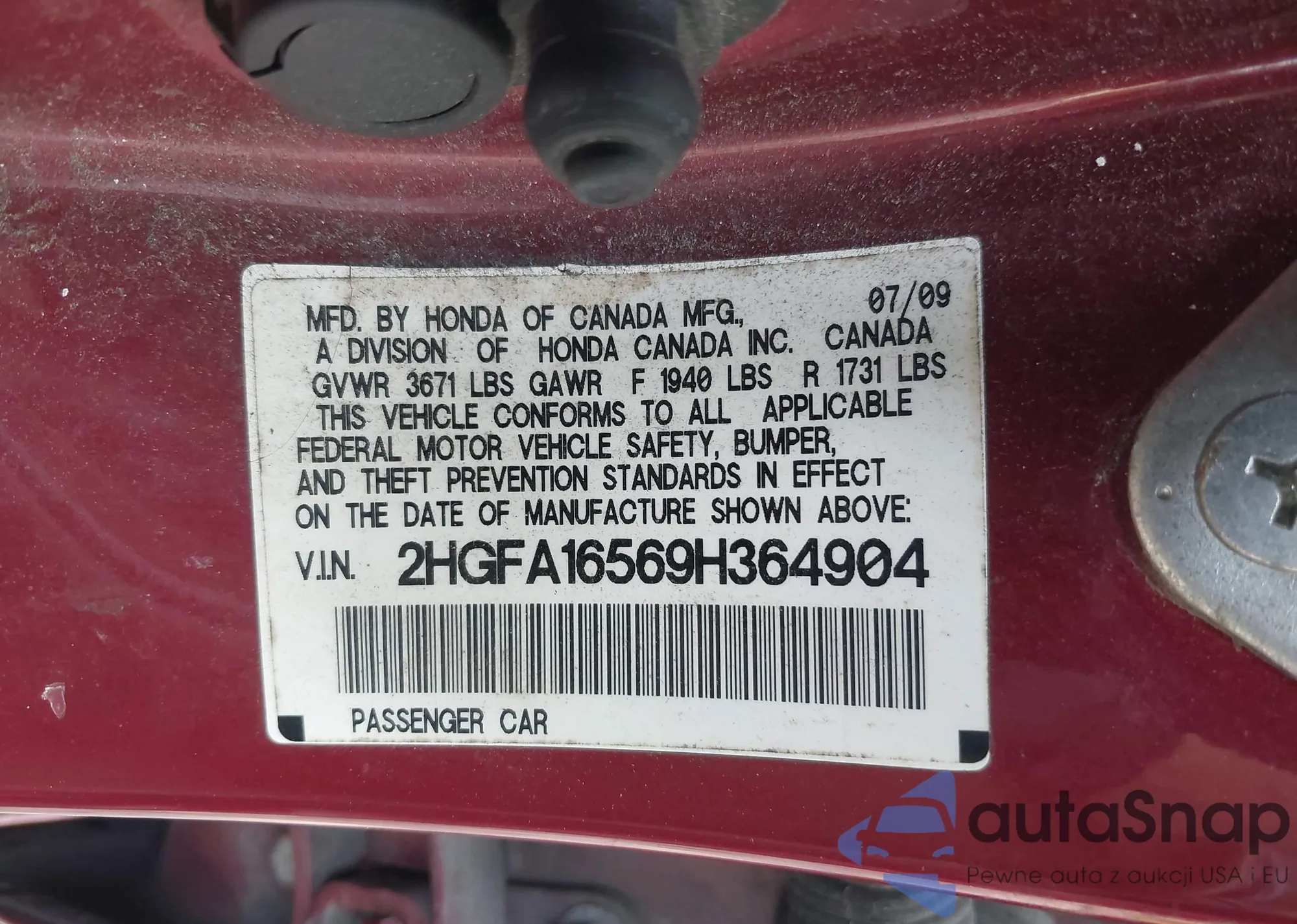 VIN: 2HGFA16569H364904