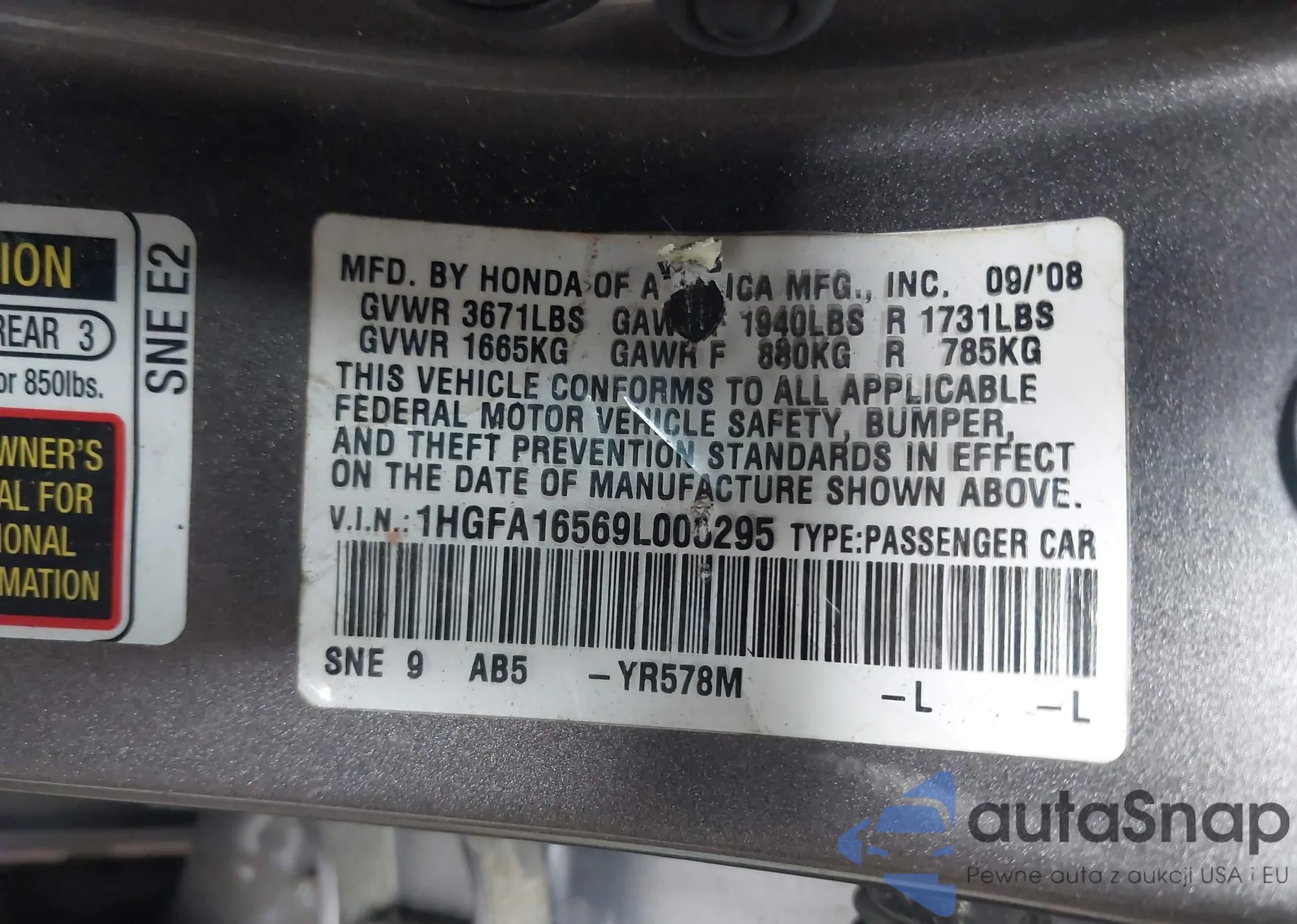VIN: 1HGFA16569L005295