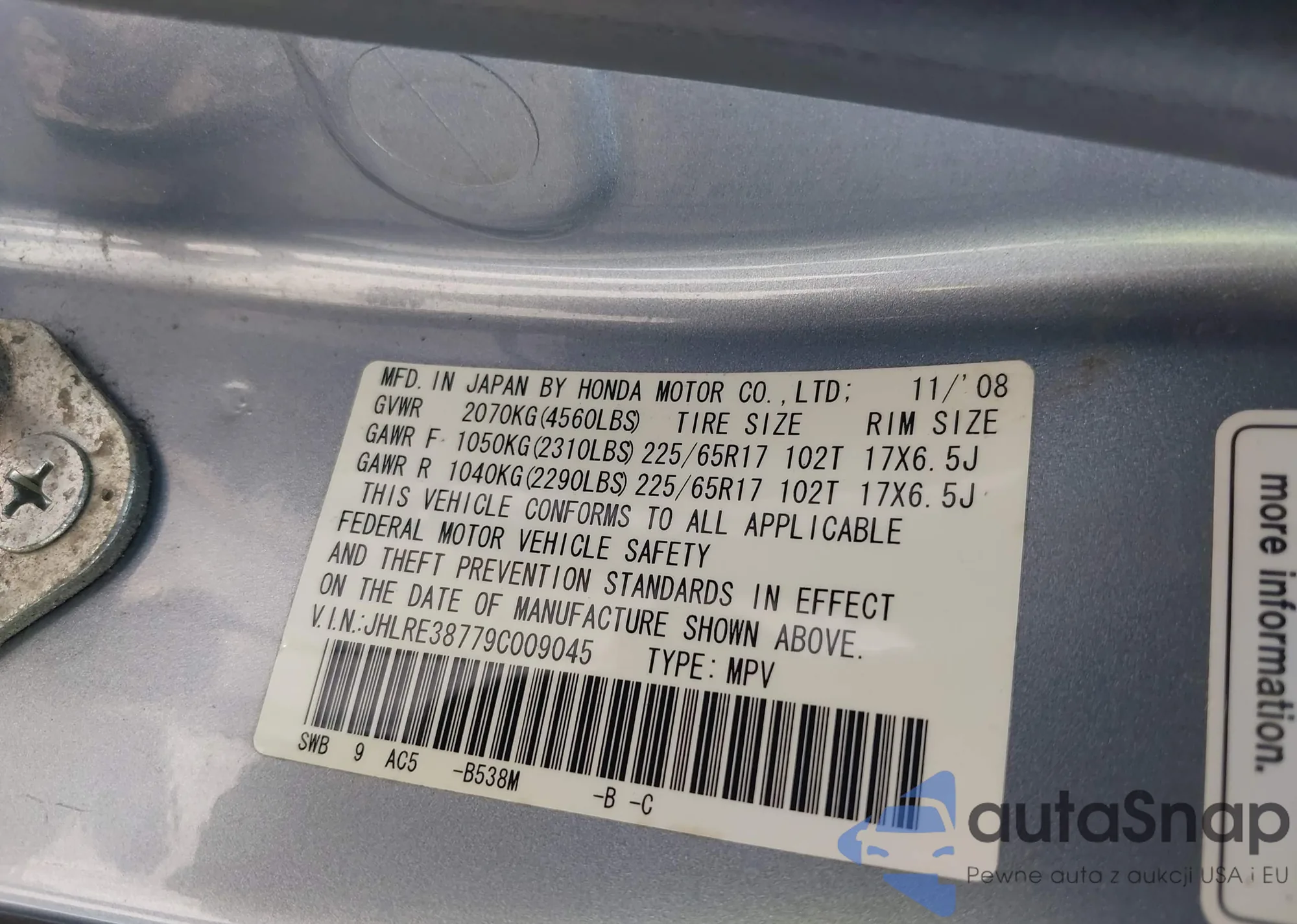 VIN: JHLRE38779C009045