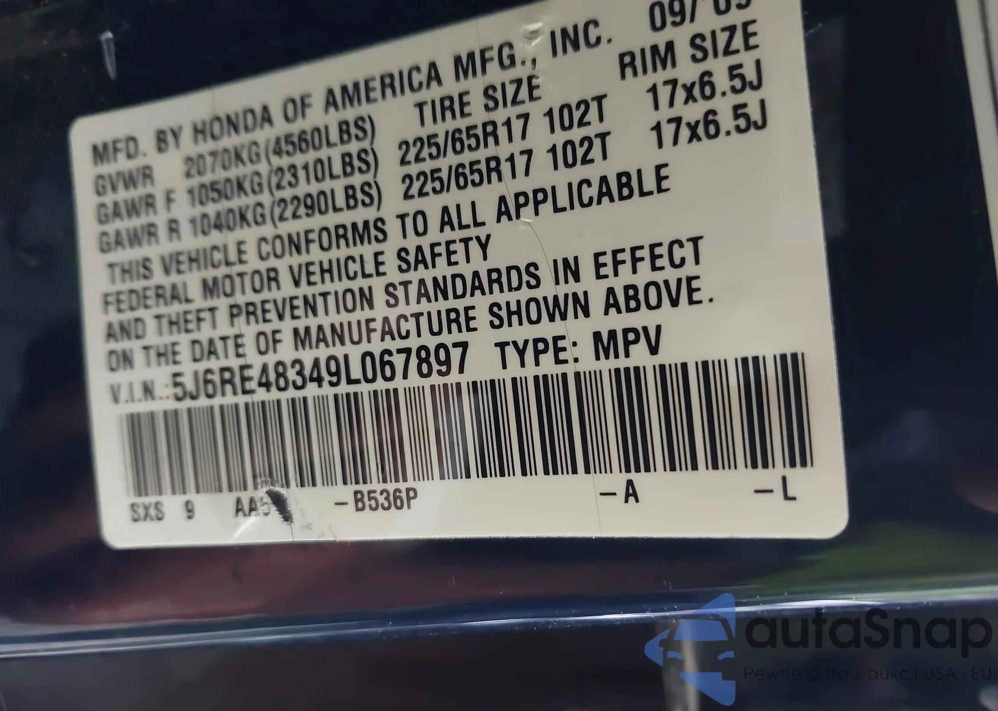 VIN: 5J6RE48349L067897