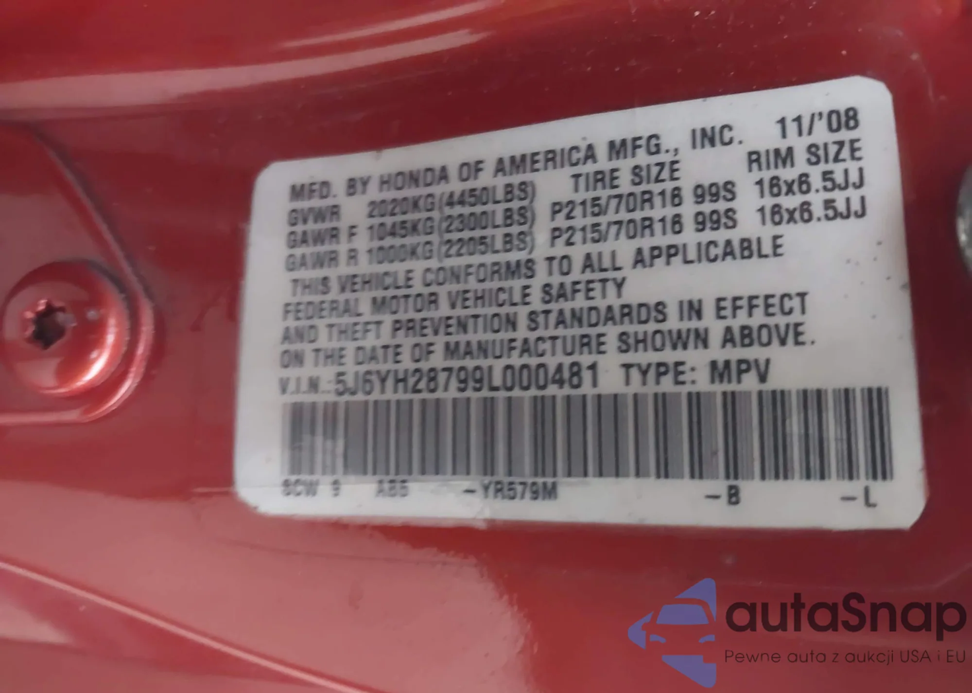 The car Honda Element 2009 (VIN 5J6YH28799L000481) has not been auctioned before. The documents are clean, and the mileage matches or is below the market average. Sold by an insurance company – we recommend purchase. Delivery to the port will take approx. 6–8 weeks.