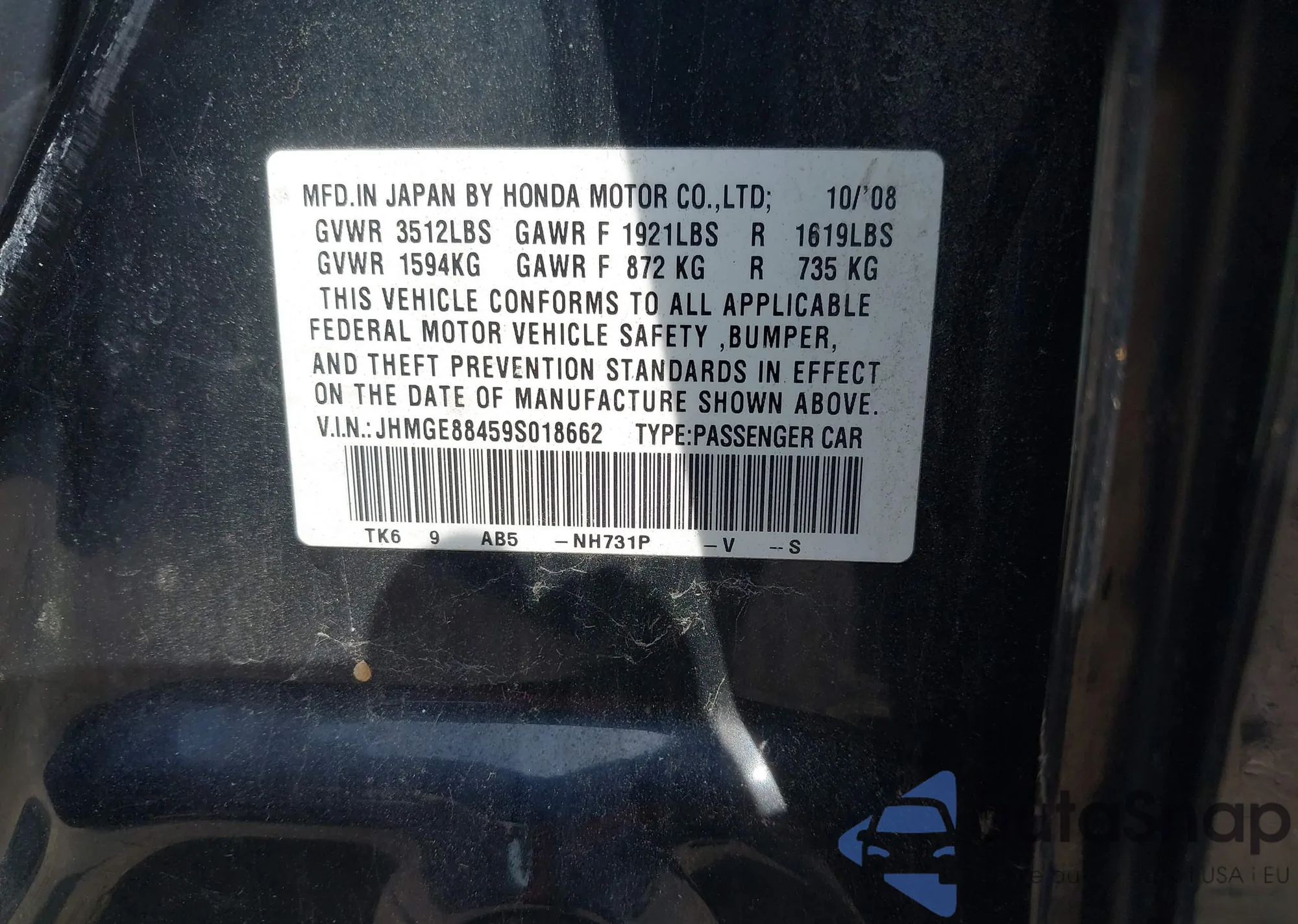 VIN: JHMGE88459S018662