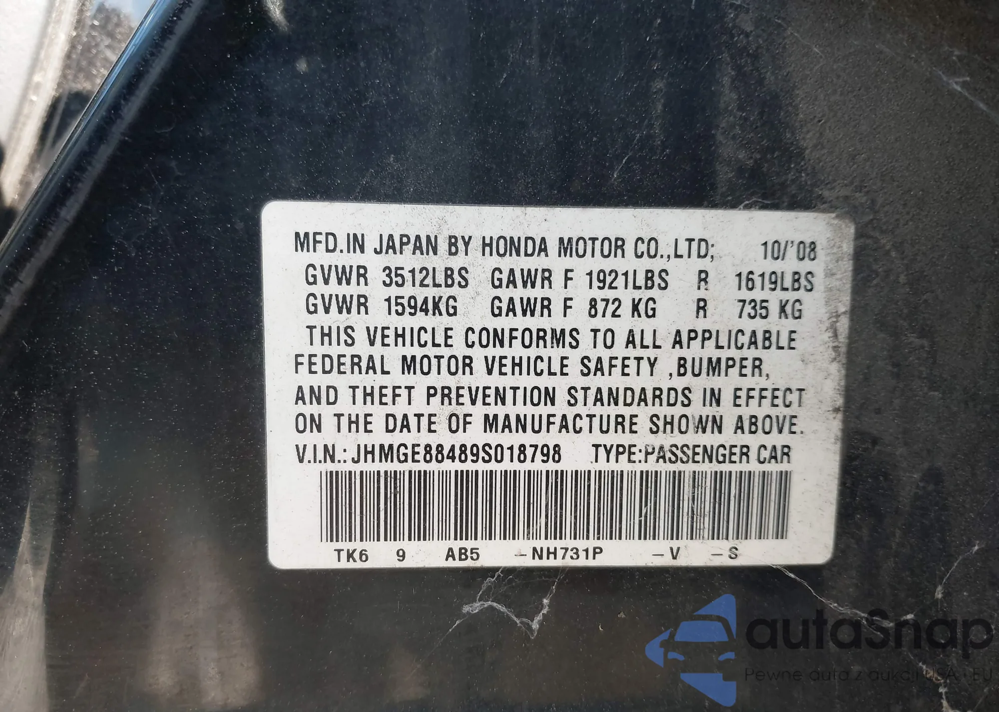 VIN: JHMGE88489S018798