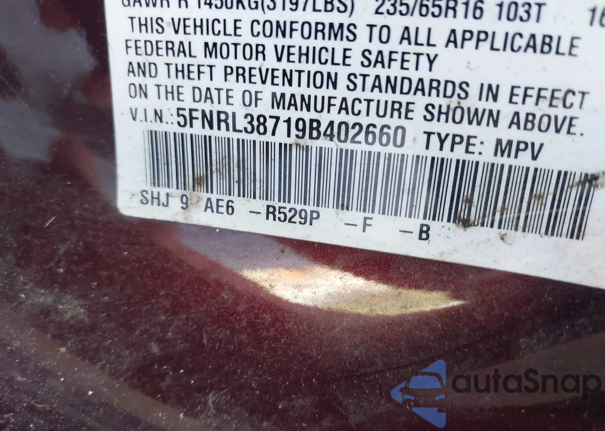 VIN: 5FNRL38719B402660