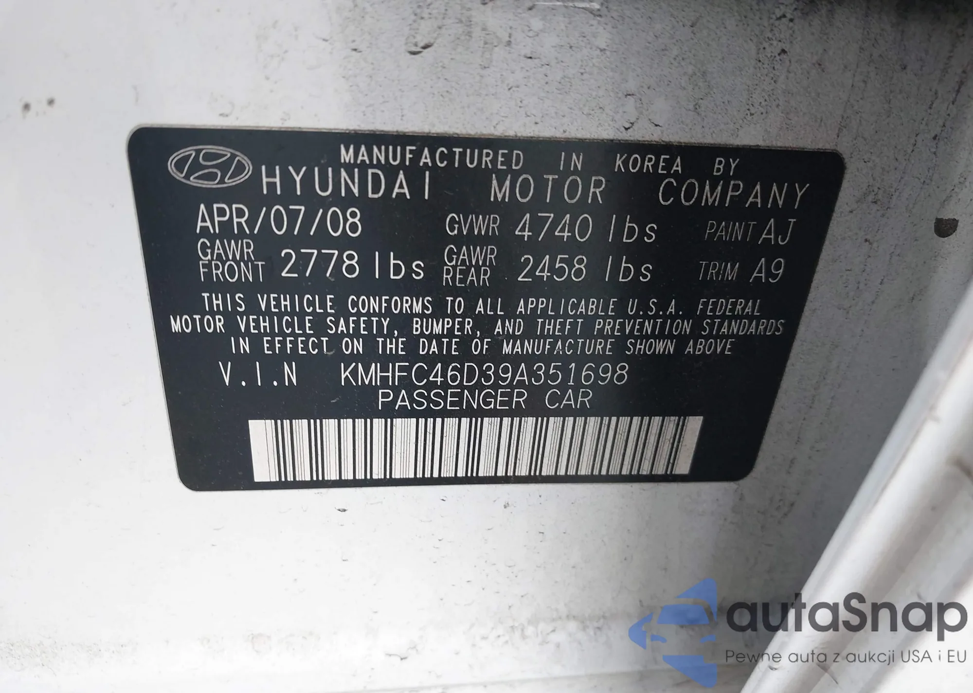 • VIN: KMHFC46D39A351698