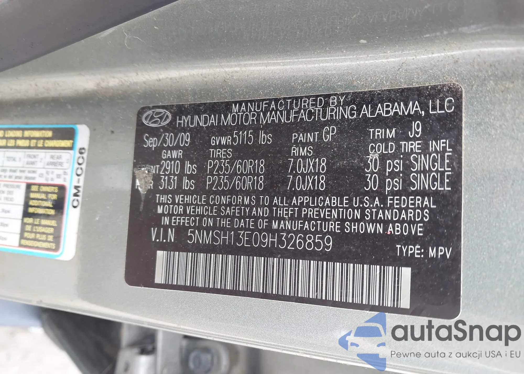 VIN: 5NMSH13E09H326859