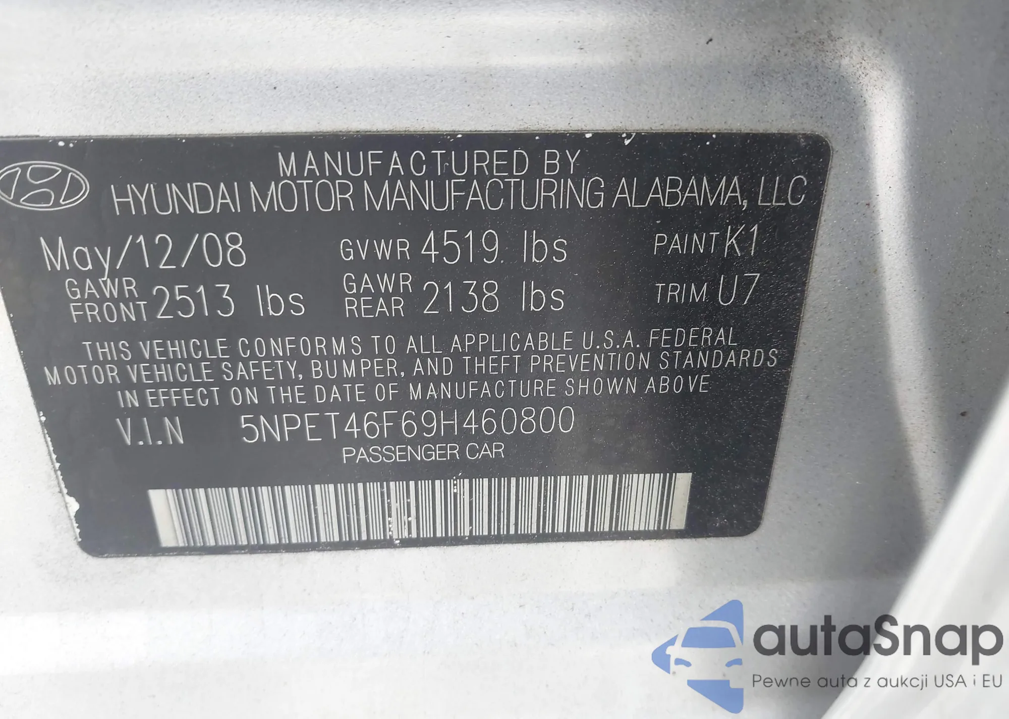 VIN: 5NPET46F69H460800