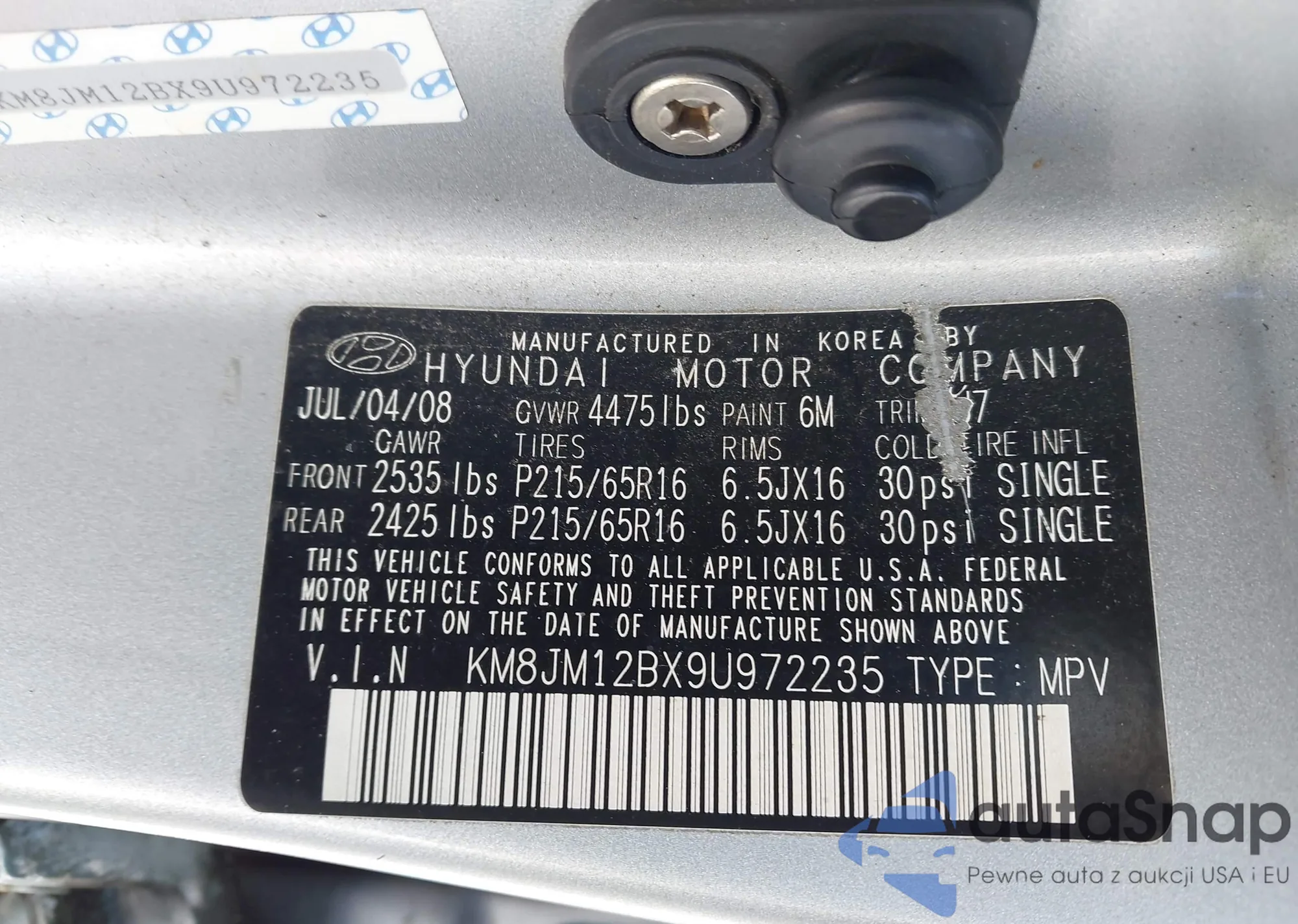 The car Hyundai Tucson 2009 (VIN KM8JM12BX9U972235) is sold by an unverified seller. We recommend checking the Carfax report and confirming registration possibilities before purchase.