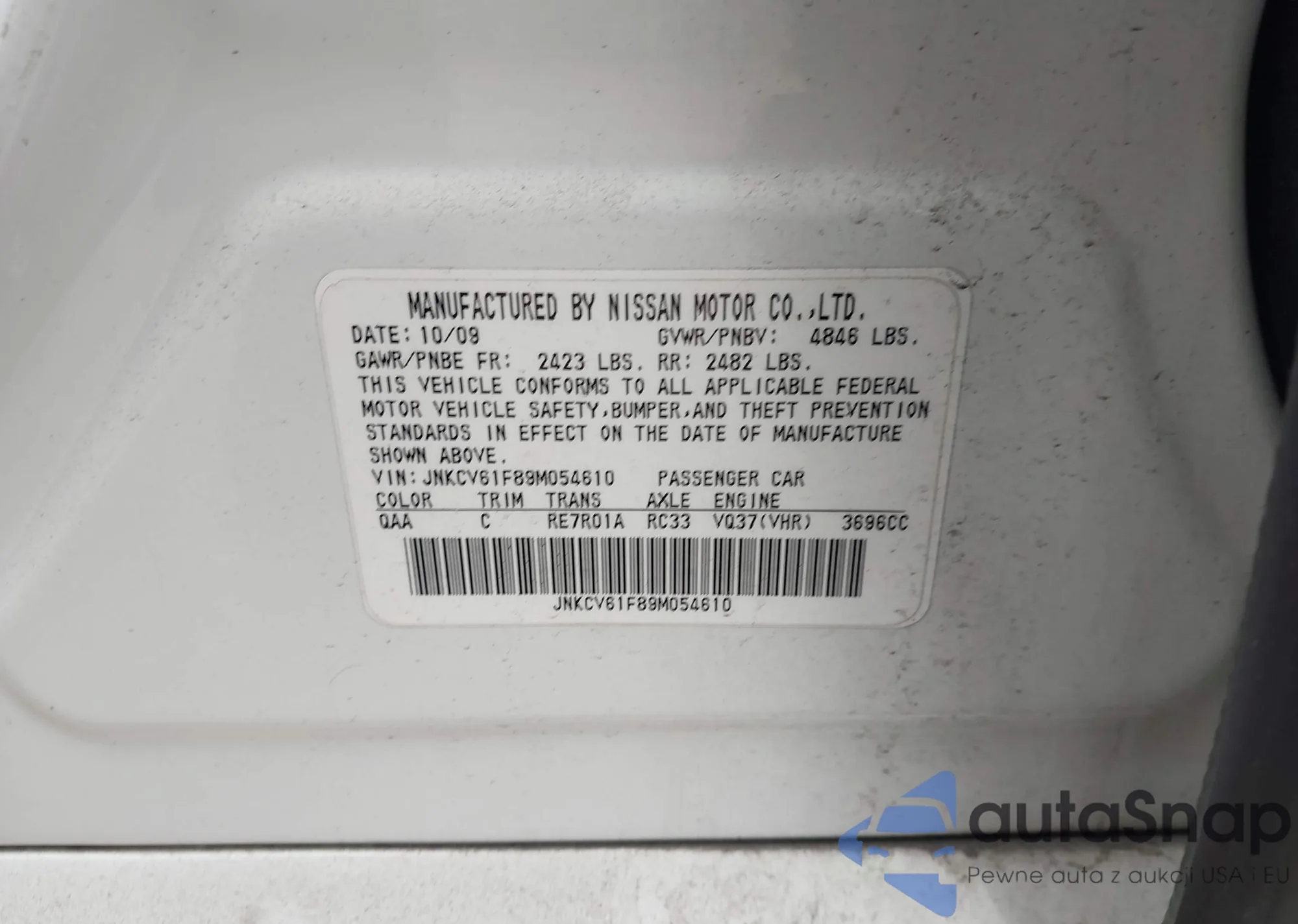 • Make: 2009 Infiniti G37X
