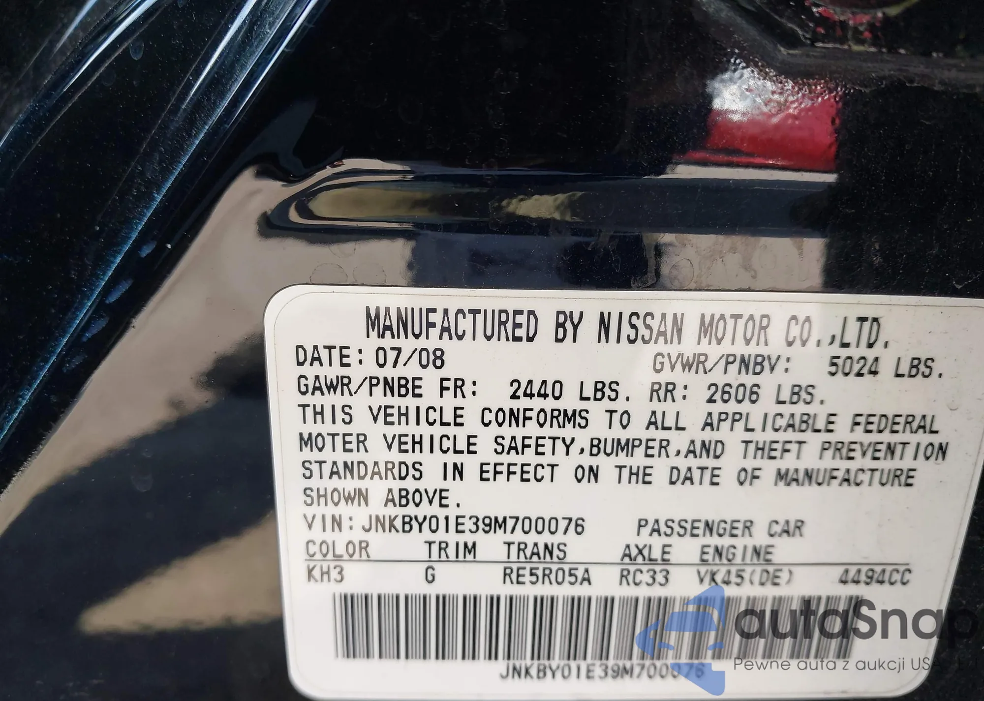 VIN: JNKBY01E39M700076