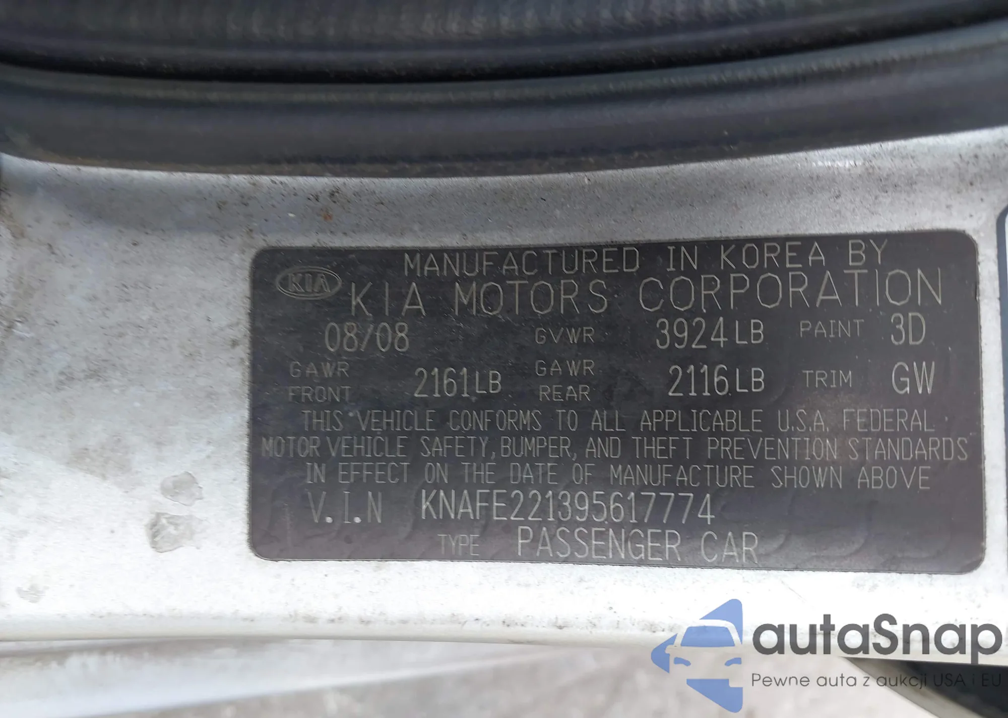 VIN: KNAFE221395617774