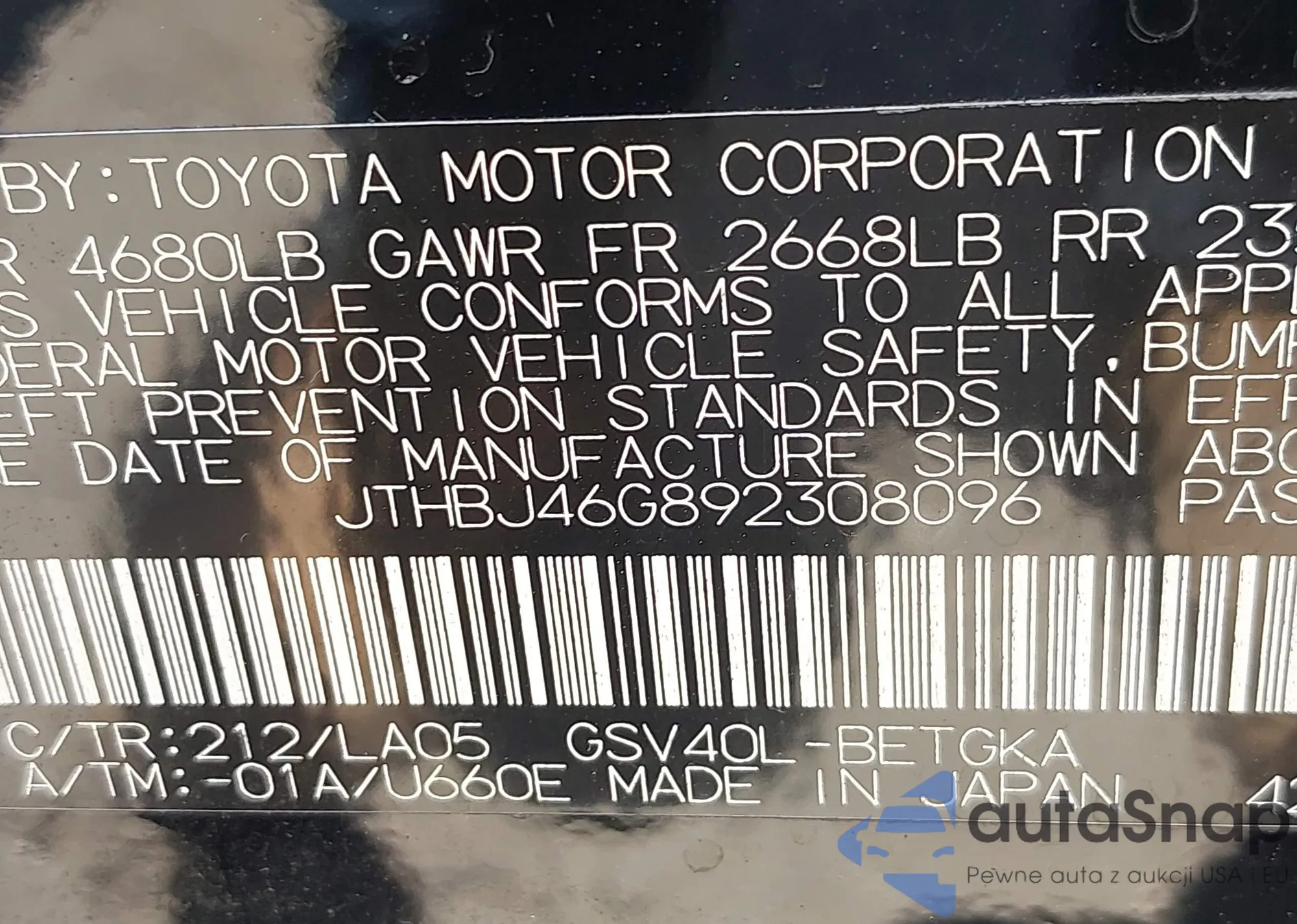 VIN: JTHBJ46G892308096
