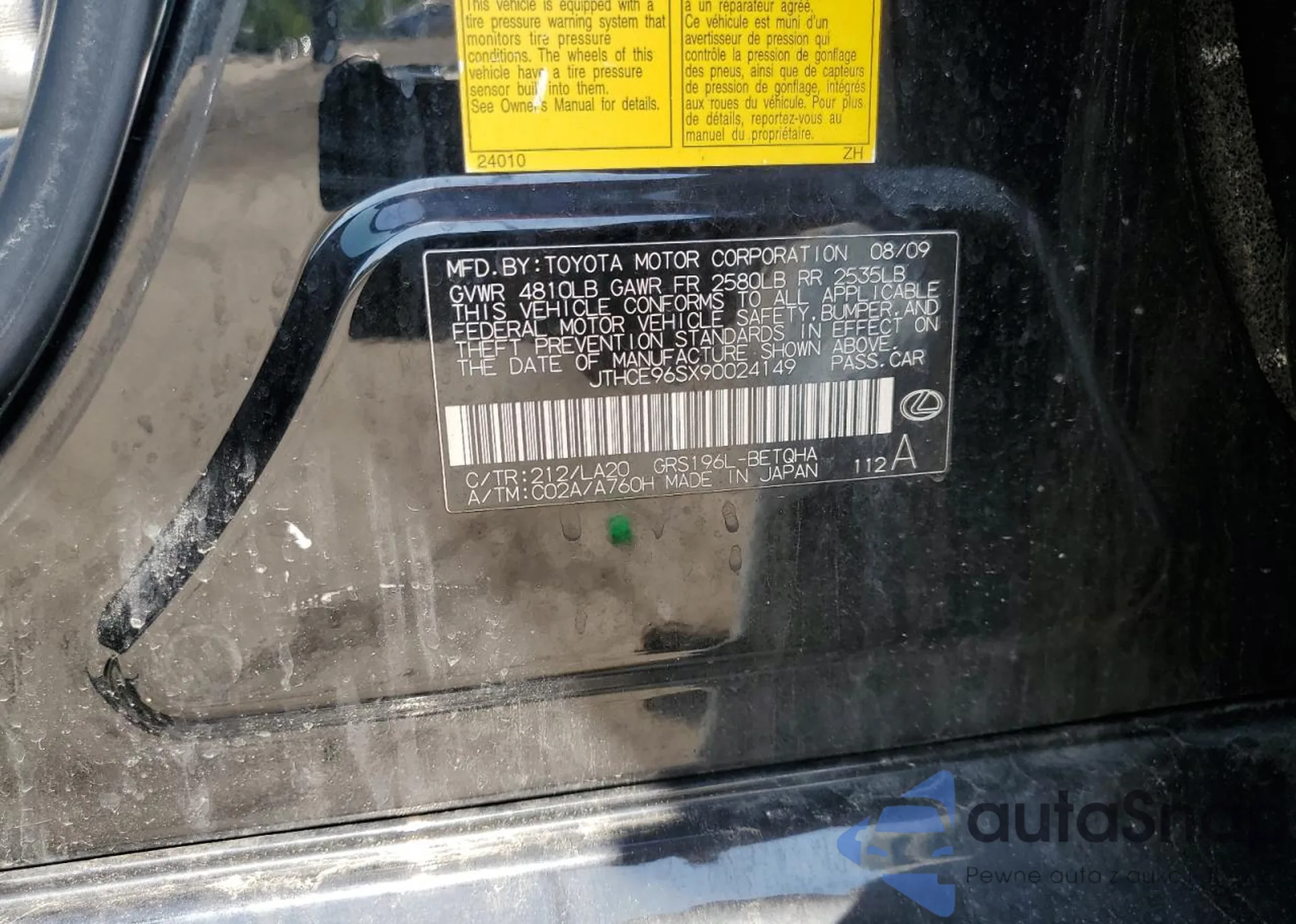 VIN: JTHCE96SX90024149