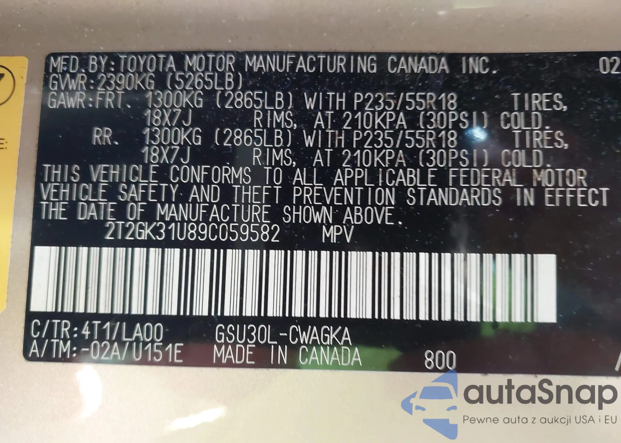 VIN: 2T2GK31U89C059582