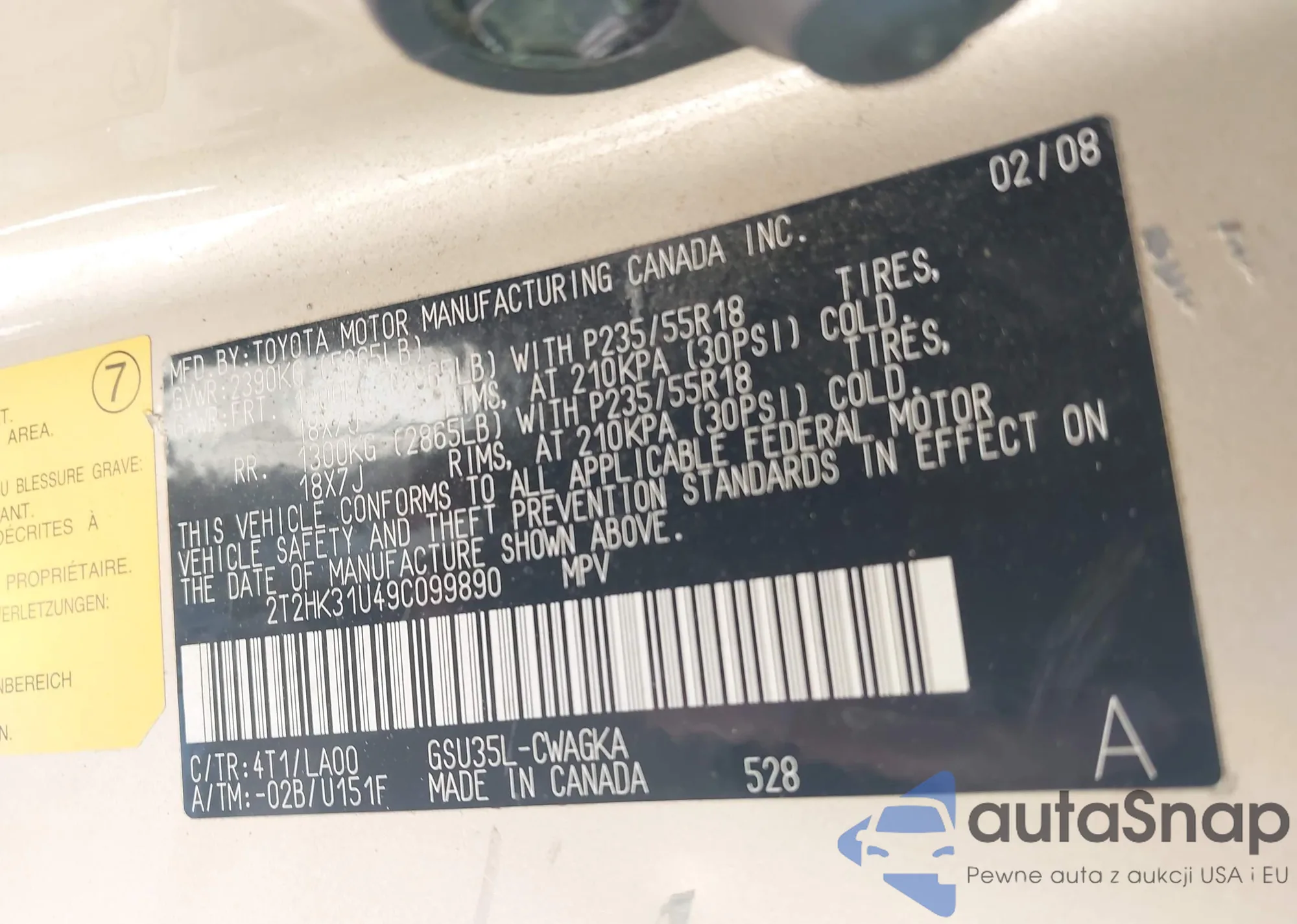 The car Lexus RX 2009 (VIN 2T2HK31U49C099890) has not been auctioned before. The documents are clean, and the mileage matches or is below the market average. Sold by an insurance company – we recommend purchase. Delivery to the port will take approx. 6–8 weeks.
