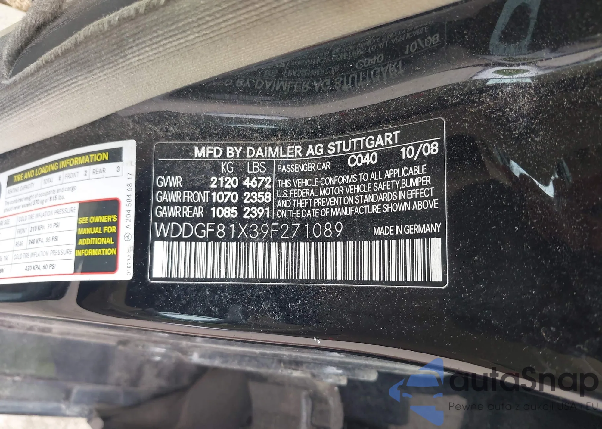 VIN: WDDGF81X39F271089