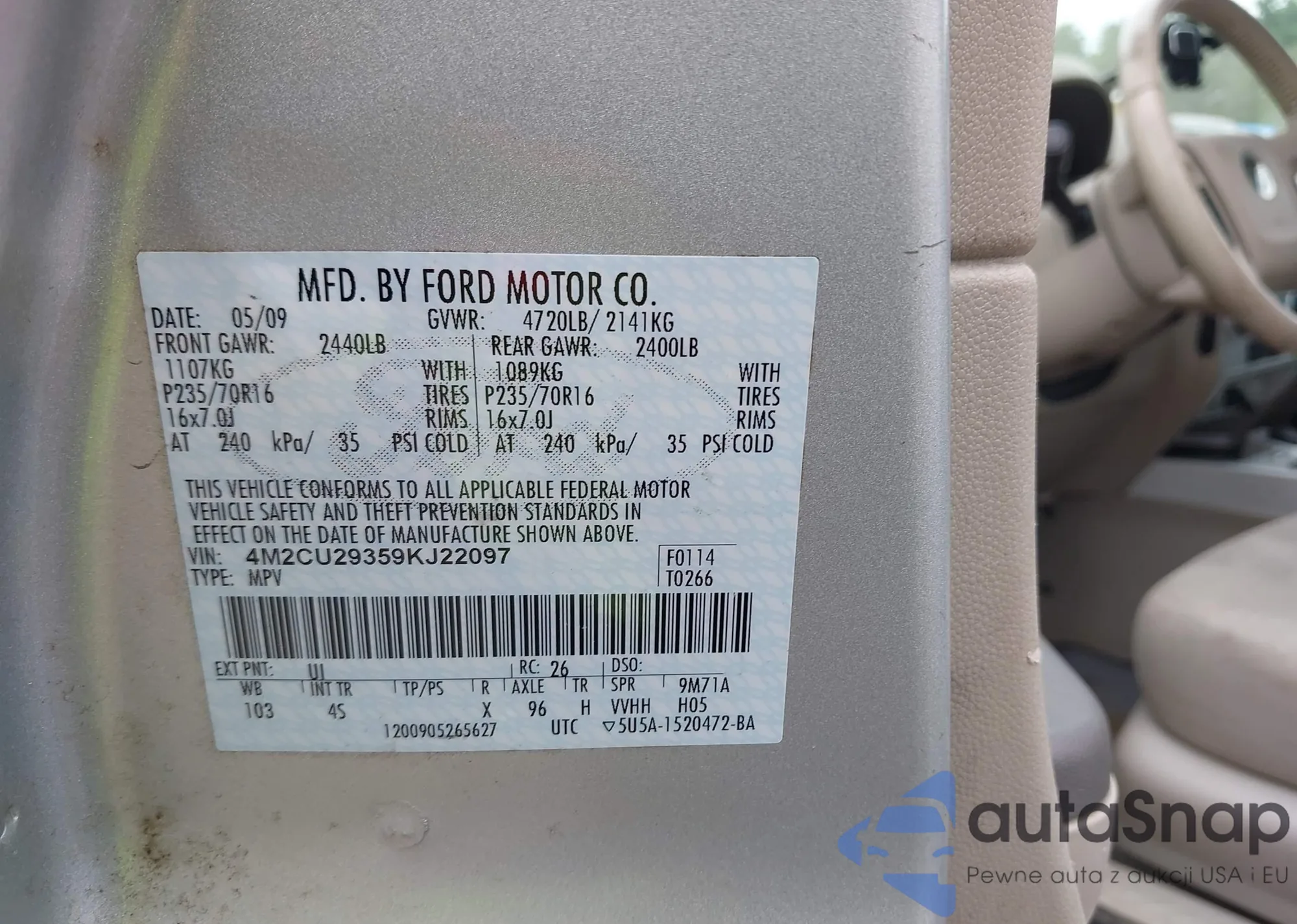 VIN: 4M2CU29359KJ22097